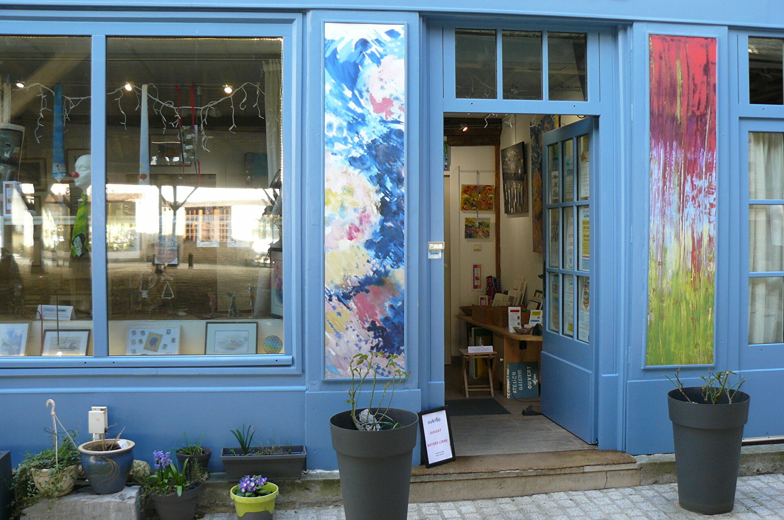 Atelier-galerie : exposition permanente des œuvres de 2 artistes, Geneviève Guérard-Defaux (artiste peintre et clown) et Philippe Guérard-Defaux (Pégé, artiste plasticien et sculpteur) où sont présentés peintures (huiles, aquarelles, pastels…), sculptures et objets d'art (timbres, cravates, chaises…) .