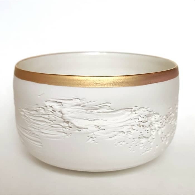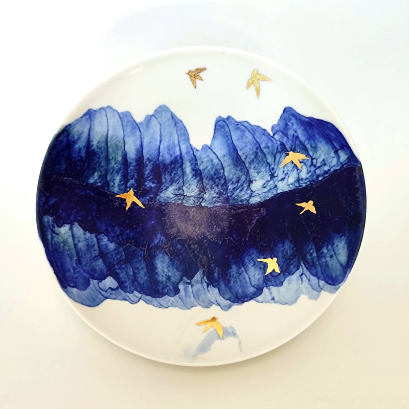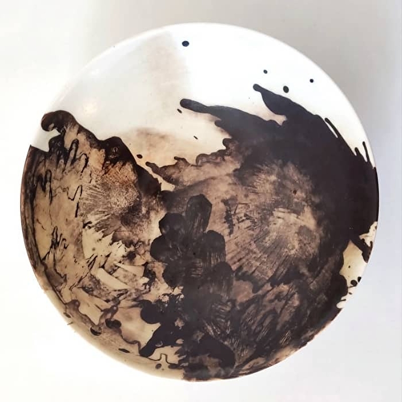 Guidée par l’expression des matières, l'exigence de leurs particularités, je cherche. Je trouve. Je demande et je reçois. J'apprends à me défaire de l'attente de la réalisation de mes désirs en ouvrant mon regard sur l'inconnu, sur ce que je n'espérais même pas et qui m'est offert d'accueillir. A l'affût de ces moments de grâce qui ouvrent mon esprit, nourrissent mes espoirs et m'émerveillent depuis maintenant vingt ans, j'ai appris, compris et reconnu que "Ce que je fais m'apprends ce que je cherche". ( P. Soulages ). J’aime l'humble noblesse des objets faits main et particulièrement ceux transformés par l'épreuve du feu. La présence et l'usage de ces objets uniques donnent du relief, du sens et de l'élégance à notre quotidien. Mon travail de recherche se porte sur l’évocation des phénomènes naturels par la recherche du dialogue entre la forme et sa matière et l’équilibre graphique, picturale, entre couleurs et textures. Je considère chaque pièce, chaque objet, comme une œuvre d'art. En créant mes émaux à l’aide de matières minérales et métalliques, je provoque et suis spectatrice de la rencontre des éléments. La terre, l'eau, l'air, le métal et enfin le feu, sont mes partenaires d'enfantement. Leurs métamorphoses dans le secret de mon four m’offrent, aux défournements , à la fois la certitude et l’illusion d’en être complice. Les défournements donnent les réponses puis les pistes : l'acuité du réel engendre la sagacité de l'imaginaire. L'arrivée du désir succédant à la lucidité, l'envie et le rêve des possibles résultent de l'accompli. Mon inspiration est nourrie grâce à la concrétisation et l'incarnation de mes idées. Emotionnellement, le défournement est un moment unique, intense car exaltant, souvent magique, mais aussi parfois fait de grandes désillusions... Déterminant , il est "Le lien entre passé et présent au service du futur." (C.G.Jung)