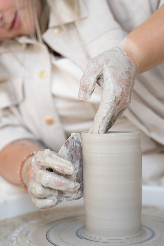 Anne-Sophie propose des ateliers de tournage et de modelage.