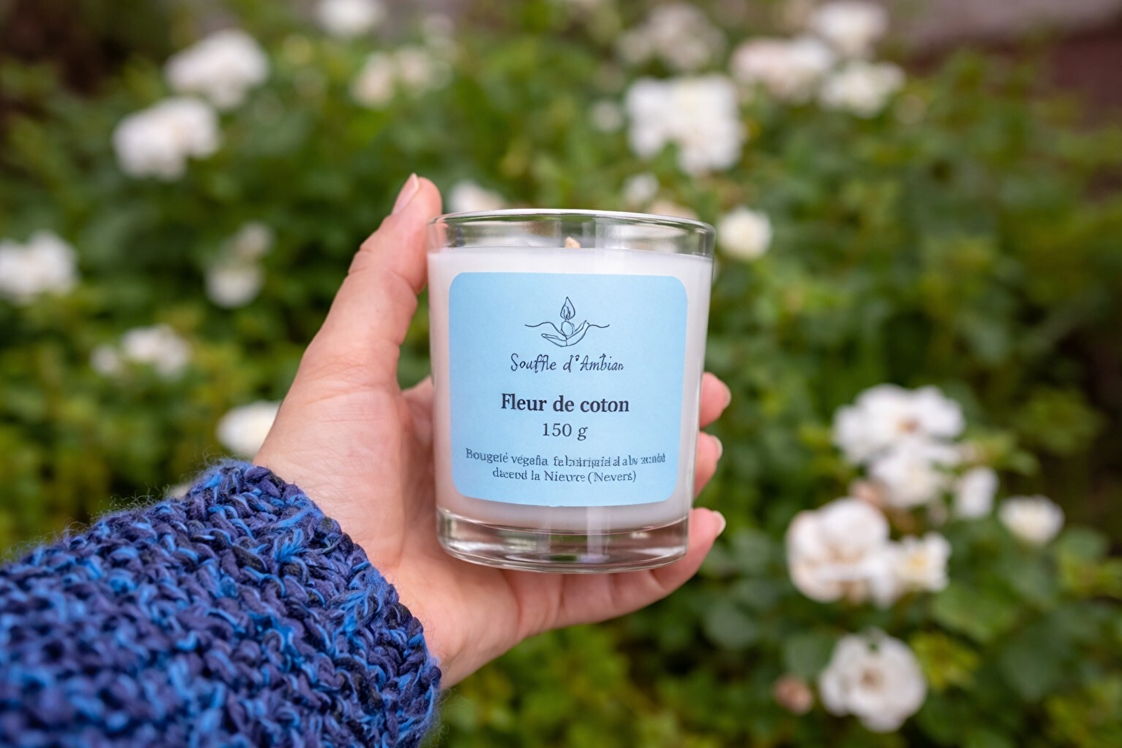 Les bougies sont coulées dans des pots en verre. Chacune est décorée de fleurs séchées. Certaines des fleurs sont directement récoltées et séchées à l'atelier à Nevers.