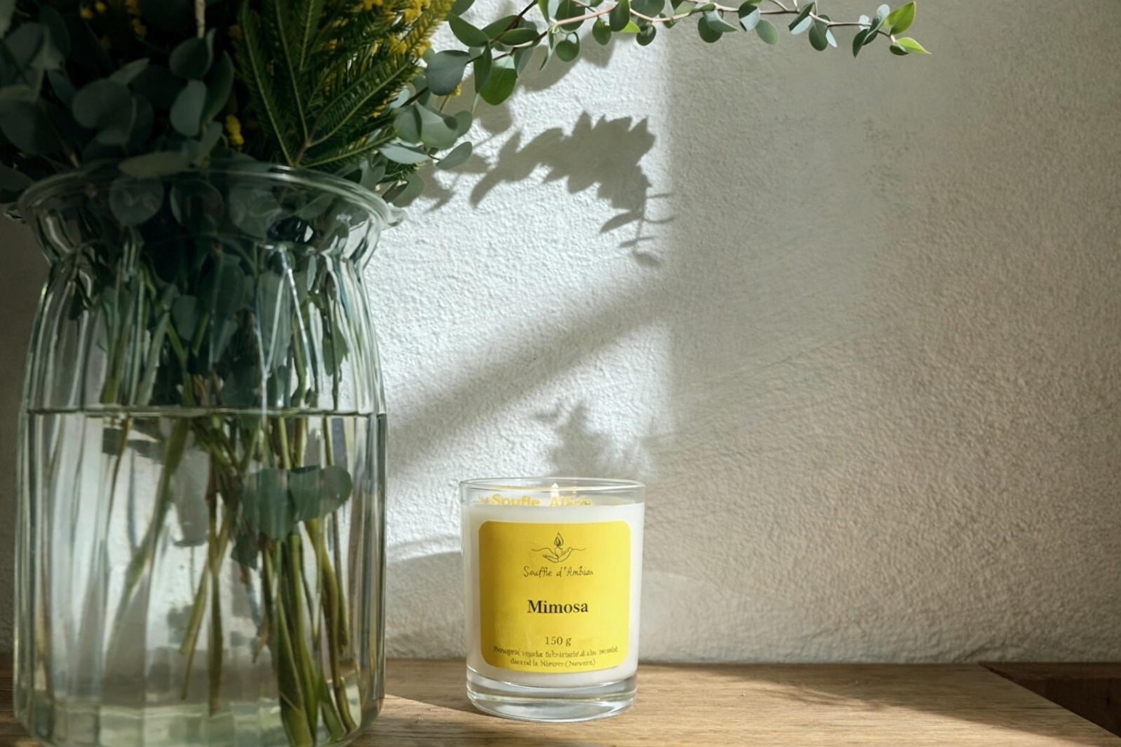 Il existe également des bougies réalisées dans des fonds de bouteilles de vin. Les bouteilles sont découpées à la main à l'atelier pour laisser place à la "cuvée Souffle d'Antan" parfum pinot gris.