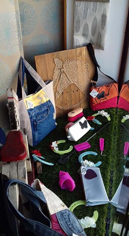 Création d’articles (coussins, trousses, pochettes, sacs de plusieurs modèles) à modèle unique issus de chutes de tissus d’ameublement, de jeans et simili-cuirs dans une optique zéro déchet.