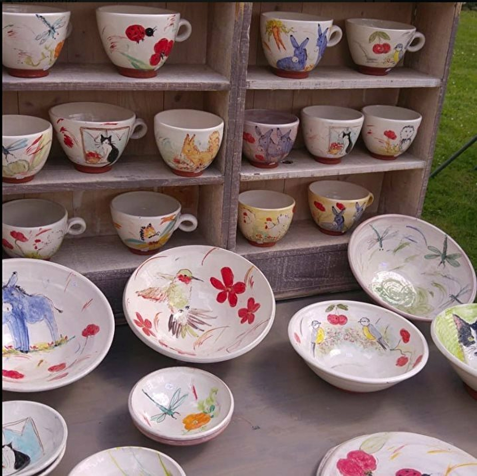 De la vaisselle aux motifs champêtres mais aussi des pièces uniques (tableaux en céramique). Explications des différentes processus de création/fabrication et démonstration possible de tournage (sur demande au préalable).