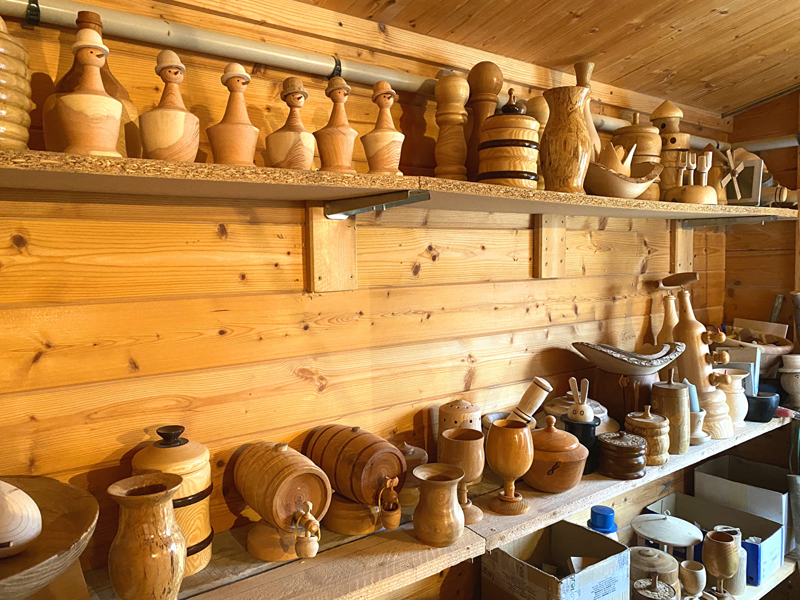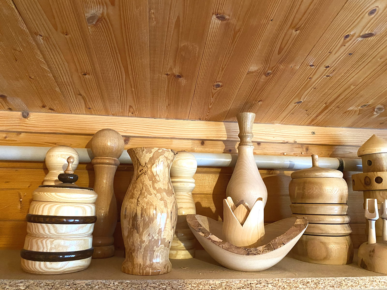 En constante recherche de nouveautés, Jean-Claude aime expérimenter et façonner des objets de toute nature en laissant libre cours à sa créativité : jouets, objets décoratifs, ustensiles de cuisine, casse-noix, moulins à poivre... Une productions foisonnante à découvrir dans le petit chalet de Jean-Claude, l'amoureux du tour à bois.