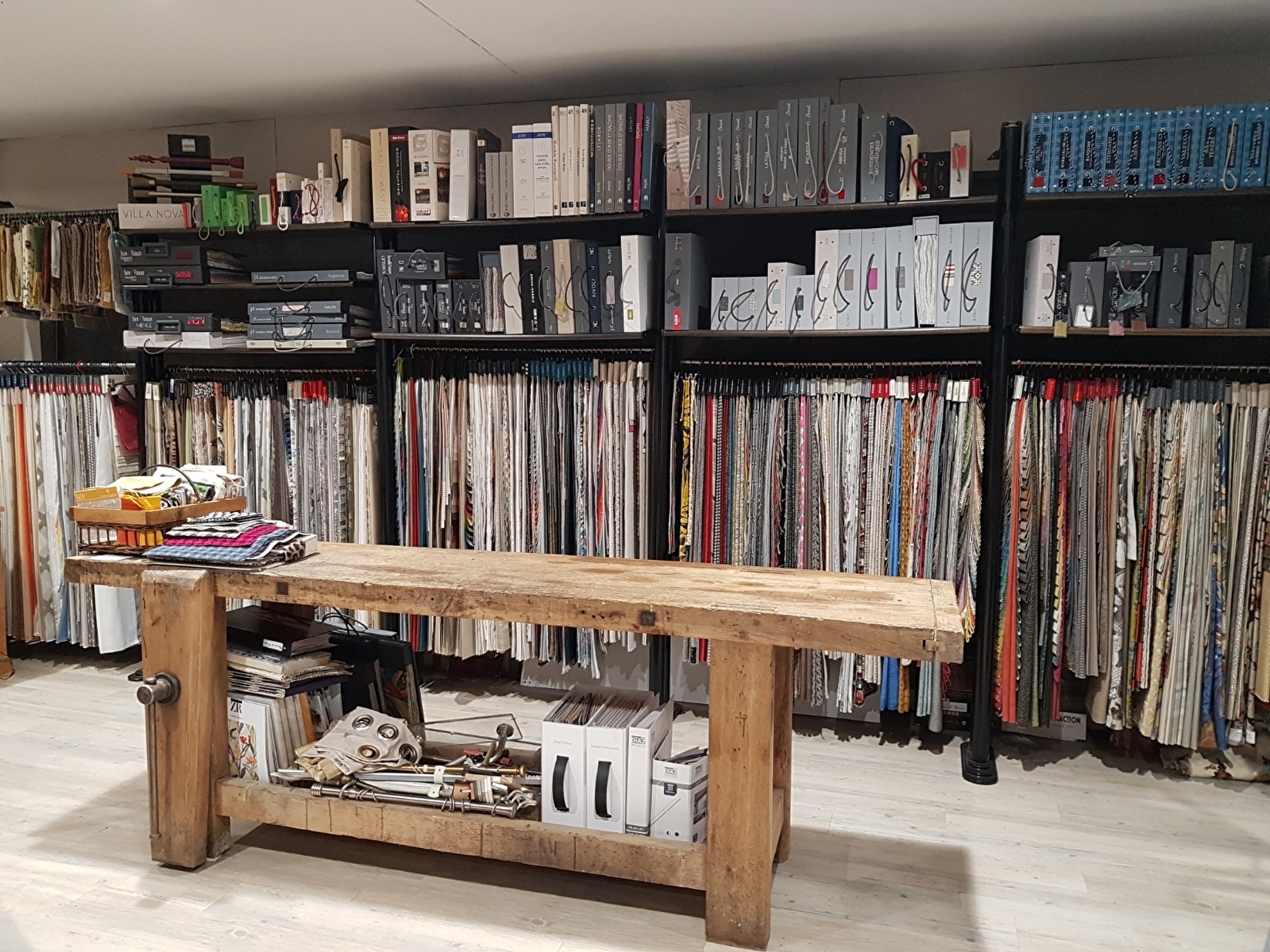 Voici un espace dédié à la restauration de siège et à la confection de rideaux. Une boutique de 120 m² avec un grand choix de tissu d'ameublement, de voilage, de cuir. Karine Viscusi vous accueillera et vous orientera parmi les matières et couleurs.