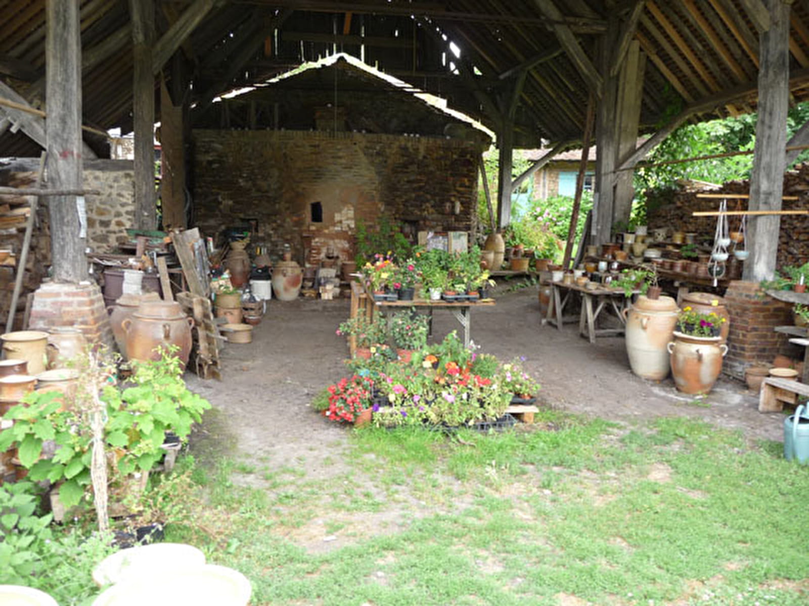 Un lieu unique où sont exposés à la vente, dans un jardin luxuriant, de beaux pots toujours cuits au bois.