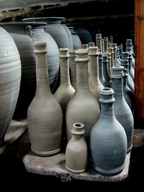 Des grès cuits au bois comme au début du siècle dernier sont en vente dans les salles d'exposition.