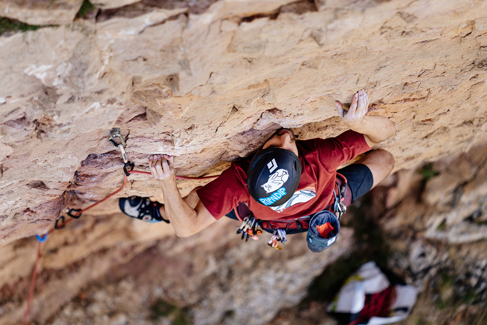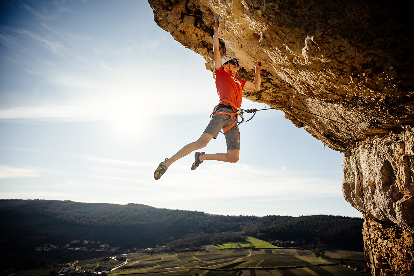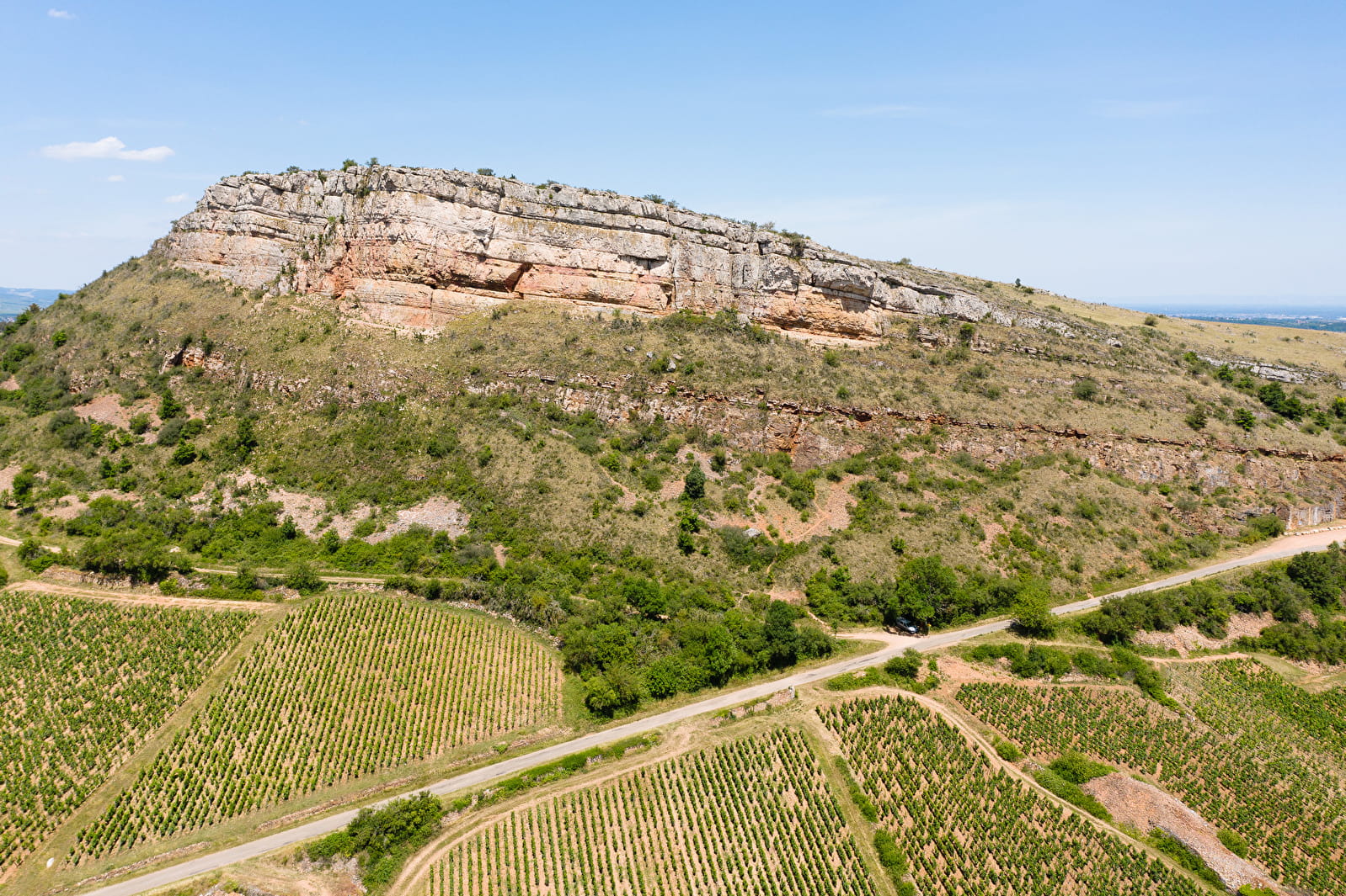Vergisson, c’est LA falaise des grimpeurs du Mâconnais. Mais pas seulement. Il n’est pas rare d’y croiser des Lyonnais et des pratiquants venus de beaucoup plus loin, qui profitent d’un voyage et d’un passage dans la vallée de la Saône, pour découvrir cette falaise originale. Cette barre de calcaire ocre et blanche se dresse, verticale, au-dessus des coteaux de vignes. Avec sa petite sœur de Solutré, cette formation rocheuse, rare dans les monts du Mâconnais attire forcément le regard, que l’on soit grimpeur, touriste ou randonneur. On la voit de très loin et on y voit très loin. Par beau temps et sans brume, en vous tournant plein est, vous pourrez contempler le Mont Blanc qui émerge au-dessus du Jura et des Préalpes. Magnifique. La grimpe à Vergisson n’est pas récente. Les premières voies ouvertes datent des années cinquante, et comme bien souvent à cette époque, elles utilisaient les faiblesses évidentes du rocher telles que les fissures, les dièdres et les cheminées. Question grimpe, le rocher n’est pas partout fabuleux, mais on y trouve de très belles zones compactes et sculptées. La raideur et la hauteur (jusqu’à 30m) sont au rendez-vous. L’escalade est rarement continue, mais se révèle assez variée : murs, dièdres, dévers, toits et même un puits. L’éventail des difficultés est important, du 4 au 8a, et le débutant pourra côtoyer des grimpeurs beaucoup plus aguerris.