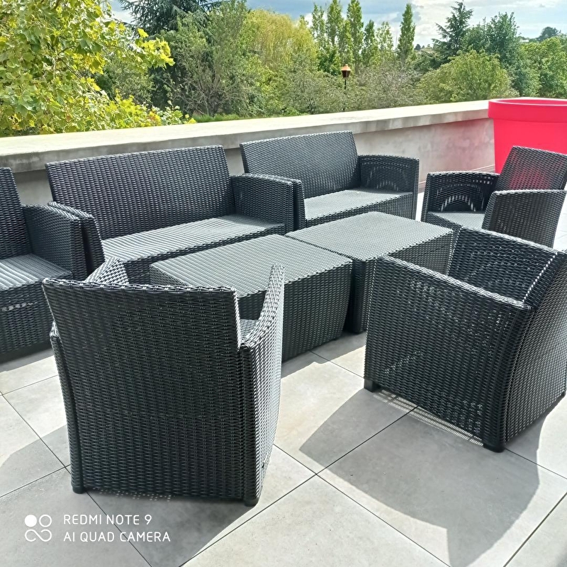 Confortable gîte de groupe (appartenant à la commune) aménagé au sein d'une demeure de pays du 19ème siècle soigneusement restaurée, revisitée & sublimée avec style en très élégant bâtiment d'architecture contemporaine mixant traditions et modernité, sise au calme en pleine campagne mâconnaise, en bordure d'une paisible petite place nichée au cœur du pittoresque & charmant village de Chânes, l'une des plus petites communes de Saône-et-Loire. Blotti au creux des magnifiques vignobles de l'ultra réputé cru Saint-Véran, ce petit bourg viticole typique à l'indéniable charme, dispose d'un riche patrimoine (église romane du XIème siècle classée, belles demeures bourguignonnes historiques, maisons traditionnelles de vignerons, château du XVIIème...) et jouit d'un cadre paysagé vallonné de toute beauté, successions de vastes coteaux de vignes, bucoliques petites rivières & collines boisées. Gîte de très bon confort. Ultra spacieux & lumineux. Pièces aux dimensions nobles. Cachet contemporain soigné. Ambiance zen & douce twistée par un esprit plus « pop » et « vitaminé » côté chambre. Vaste balcon-terrasse panoramique exposé offrant une superbe vue dégagée sur le vignoble et la campagne environnante. Agréable grand jardin public végétalisé et arboré (cognassier, noyer, pommier, cerisiers du japon…) lové en lisière immédiate de vignobles, directement accessible au pied du gîte, parfaite aire de jeux pour les enfants.