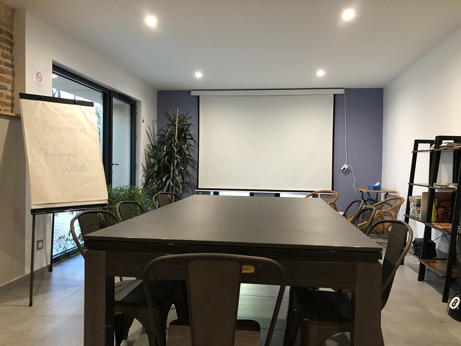 Venez travailler dans un cadre inspirant et profiter de deux maisons rénovées avec soin, totalisant plus de 450 m² de confort. Notre salle de réunion est équipée d'un vidéoprojecteur, d'un écran et d'un paperboard, offrant un environnement optimal pour vos sessions de travail.