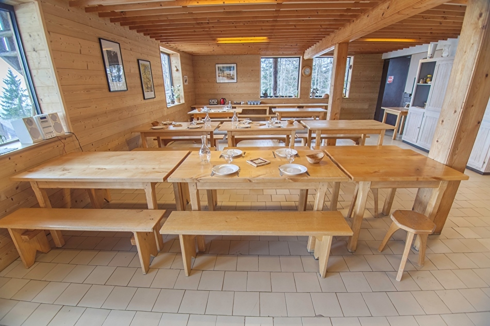 Depuis 1984 la famille Colin accueille scolaires, groupes, individuels et stages (musique, yoga etc..) dans son chalet des Cernois situé au dessus du Lac de l'Abbaye, à Grande-Rivière Château, dans le Parc du Haut Jura.