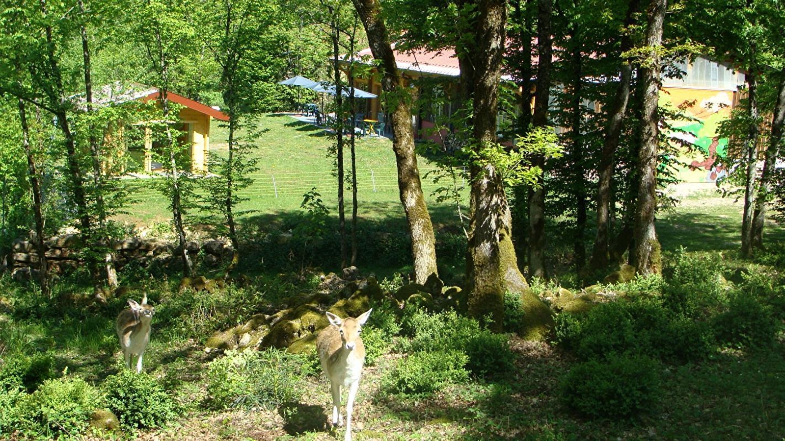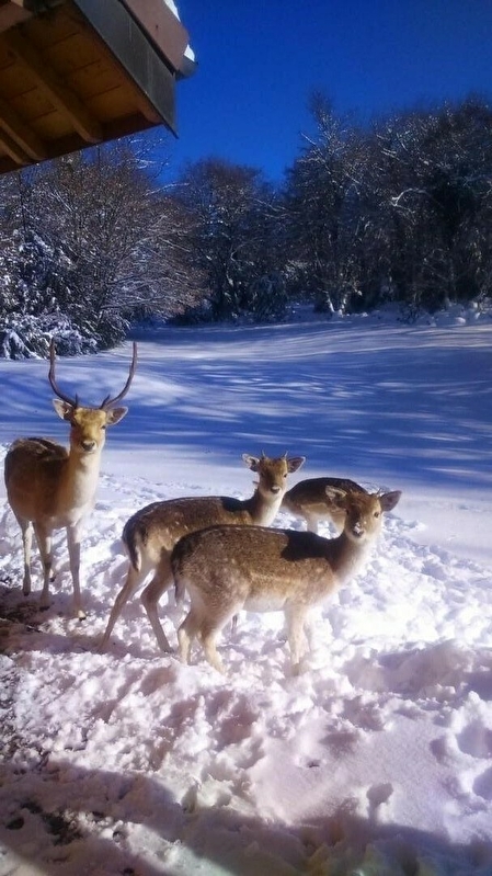 Situé dans le hameau de Petit-Chatel, dans le Parc Naturel Régional et à proximité du lac de Vouglans, ce gîte de groupe situé au coeur d'un parc à daims vous accueille dans son écrin de verdure et de calme, à proximité des sentiers de randonnée et des pistes de ski. Venez découvrir un hébergement chaleureux, moderne et confortable. Vous pourrez apprécier ce cadre exceptionnel où les daines en liberté vous enchanteront par leur présence. Dépaysement, ressourcement et bien être assurés! Le gîte se compose de 3 chambres avec lit double, Nous vous proposons le gîte de 15 personnes, un chalet de 4 couchages (1 lit double et deux lits simples) et une airstream de 4 couchages (1 lit double et deux lits simples). Au rez de chaussée : Une grande pièce à vivre pour vos repas, un salon avec un grand canapé, une télévision, une cuisine équipée, une seconde pièce avec une télévision, une cuisine équipée 3 chambres doubles (lit 140), trois salles bain, trois toilettes, Une buanderie avec lave linge, sèche linge qui peut servir de local à vélos, à skis... A l'étage : Deux mezzanines de deux lits simples chacune, Une mezzanine "salle de jeux" avec un baby foot Bonzini, et de nombreux jeux de société, Trois chambres : 2 triples (3 lits simples) t une twin (deux lits simples) A quelques mètres, un chalet avec 2 lits simples et 1 lit double et une caravane américaine avec 2 lits simples et 1 lit double. NOTE : le gîte dispose de couchages pouvant accueillir au-delà de 15 personnes afin de correspondre aux attentes des groupes, mais pour répondre aux normes des établissements recevant du public, cette capacité ne pourra pas être dépassée.