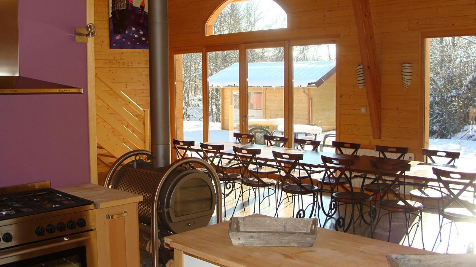Situé dans le hameau de Petit Chatel, dans le Parc Naturel du Haut-Jura, le gîte des Daines vous accueille dans un écrin de verdure et de calme dans un parc à dains.à proximité des sentiers de randonnée et des pistes de ski. Venez découvrir un hébergement chaleureux, moderne et confortable. Vous pourrez apprécier ce cadre exceptionnel où les daines en liberté vous enchanteront par leur présence. Dépaysement, ressourcement et bien être assurés! Ce gîte de grande capacité, se compose au rez de chaussée d'une grande pièce à vivre pour vos repas avec poêle à bois, d'un salon avec un grand canapé, télévision, d'une cuisine équipée. Une seconde pièce avec une télévision et une cuisine équipée vous apportera plus d'aisance. Au niveau des couchages : 3 chambres doubles (lit 140), trois salles bain, trois toilettes. A l'étage : deux mezzanines avec chacune deux lits simples, et une mezzanine "salle de jeux" avec un baby foot Bonzini, et de nombreux jeux de société, trois chambres : 2 triples (3 lits simples) et une twin (deux lits simples). NOTE : le gîte dispose de couchages pouvant accueillir au-delà de 15 personnes afin de correspondre aux attentes des groupes, mais pour répondre aux normes des établissements recevant du public, cette capacité ne pourra pas être dépassée.