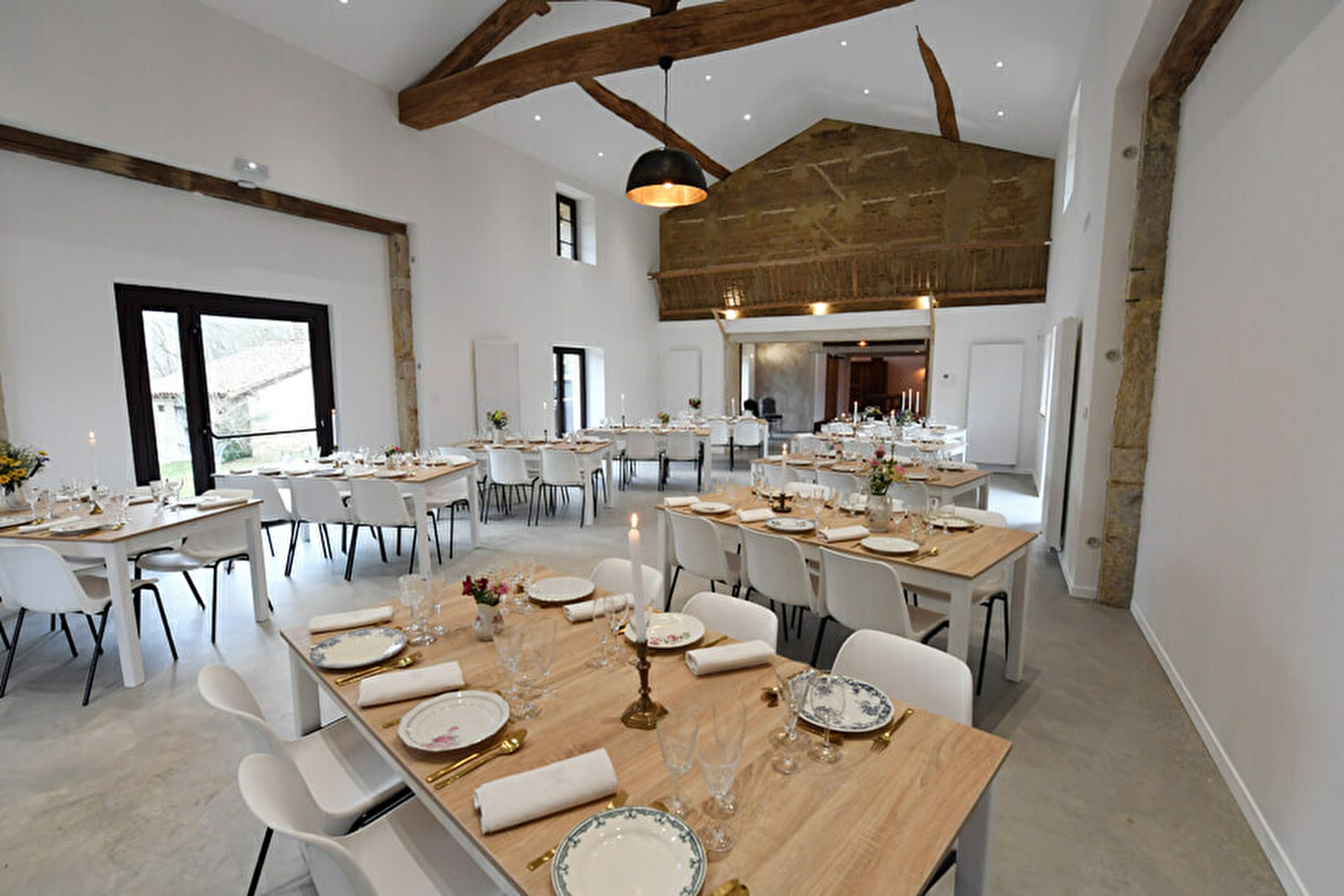 Le Domaine des Peirrouses vous propose une salle de réception pouvant accueillir jusqu'à 120 personnes assises ainsi que 15 couchages et possibilité de 11 couchages insolites supplémentaires sur place. Une salle de séjour et un salon sont aussi à votre disposition.