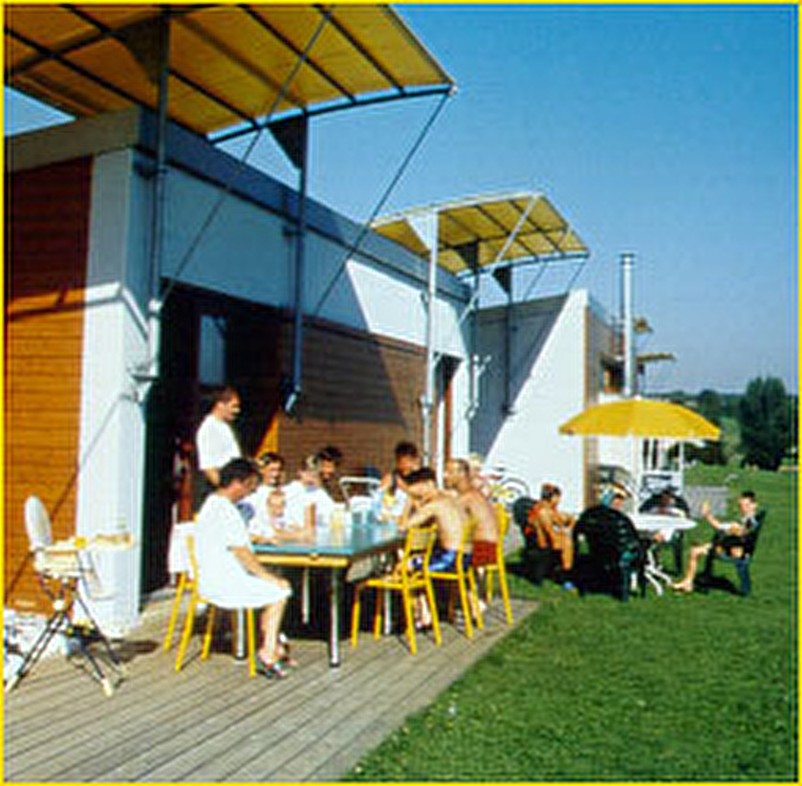 Concept original : 5 modules de plain-pied avec entrée et terrasse privative pour chacun mais aussi la possibilité de communication entre chaque, permettant l'accueil de groupes. Idéal pour l'organisation de fêtes de famille, séminaire, séjours entre amis. Grand espace central avec cheminée et coin repas.