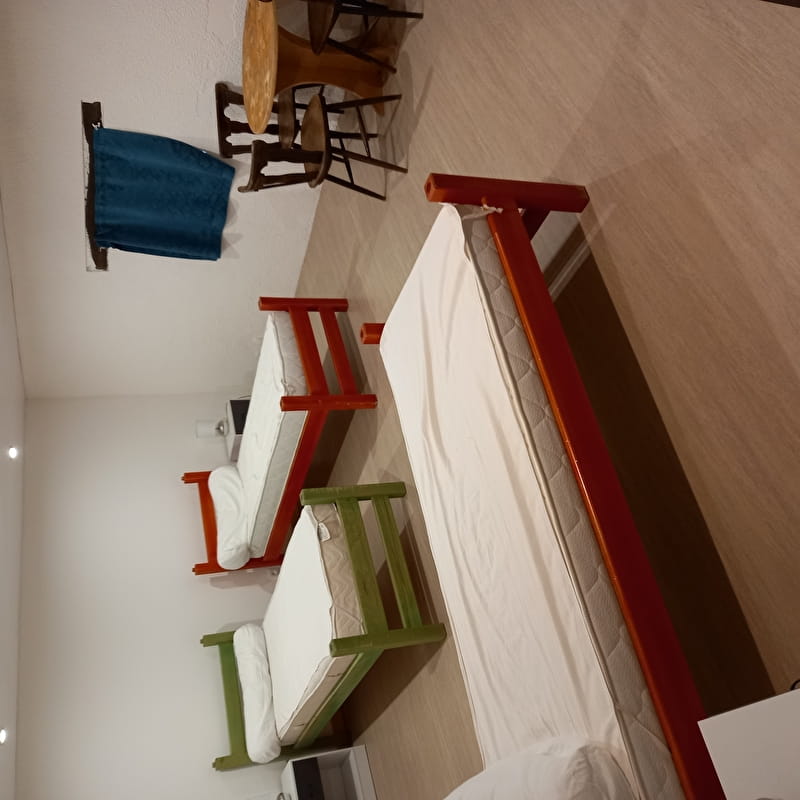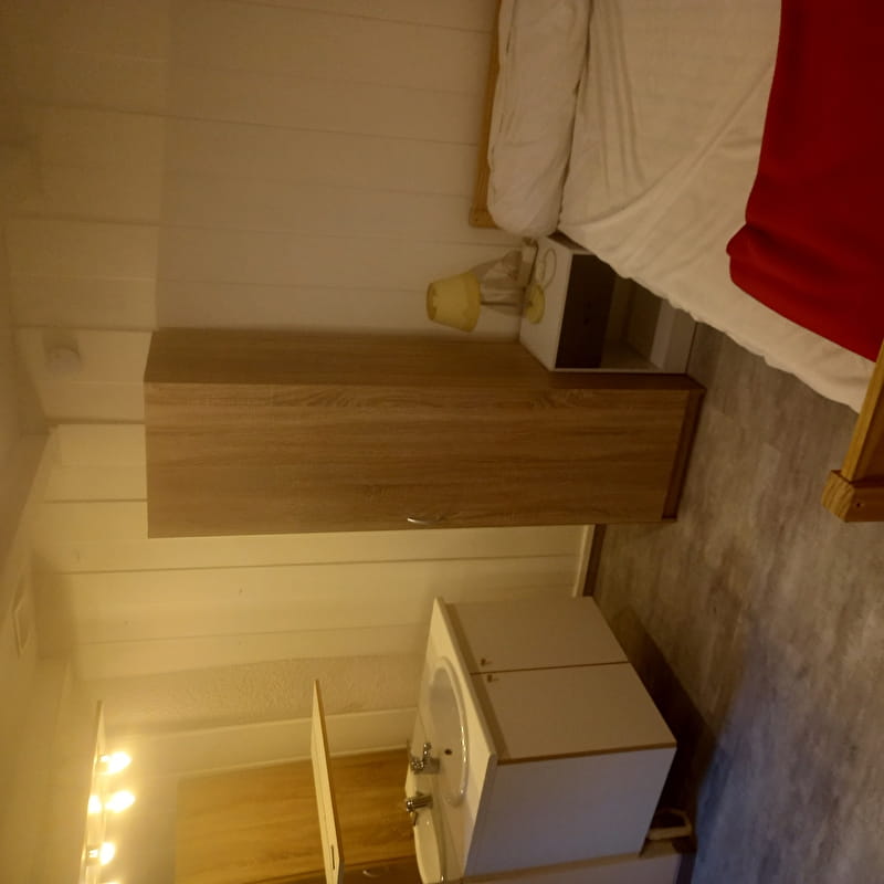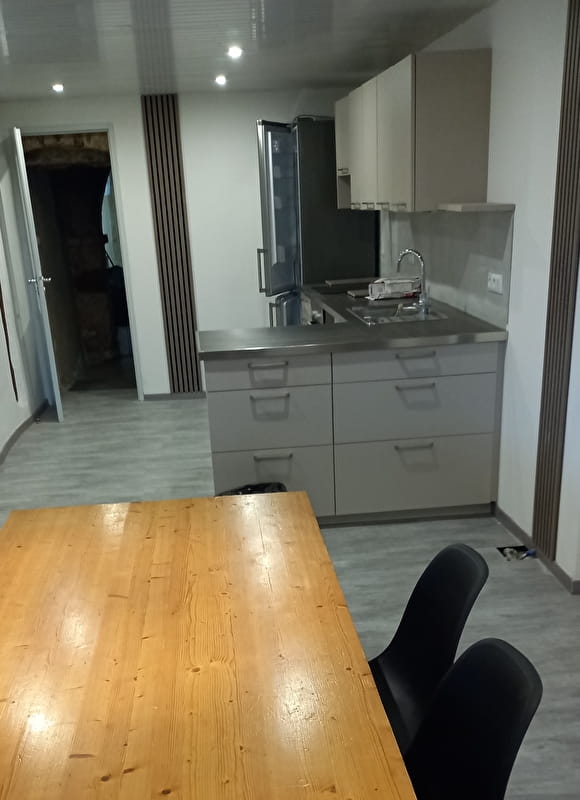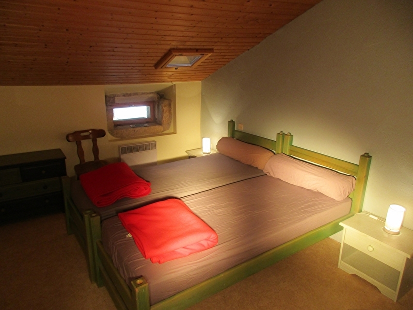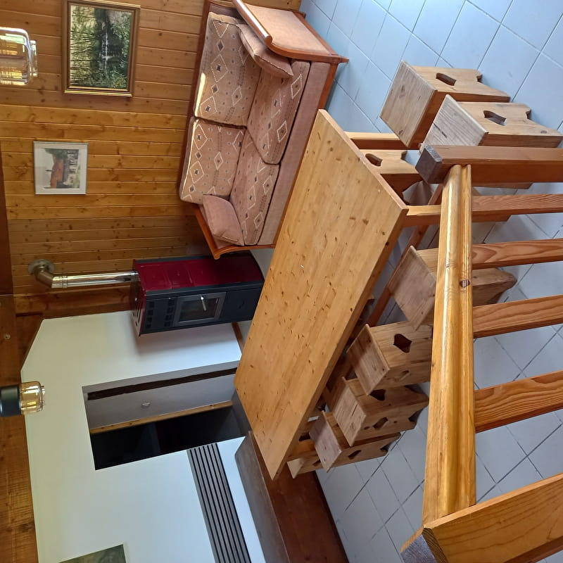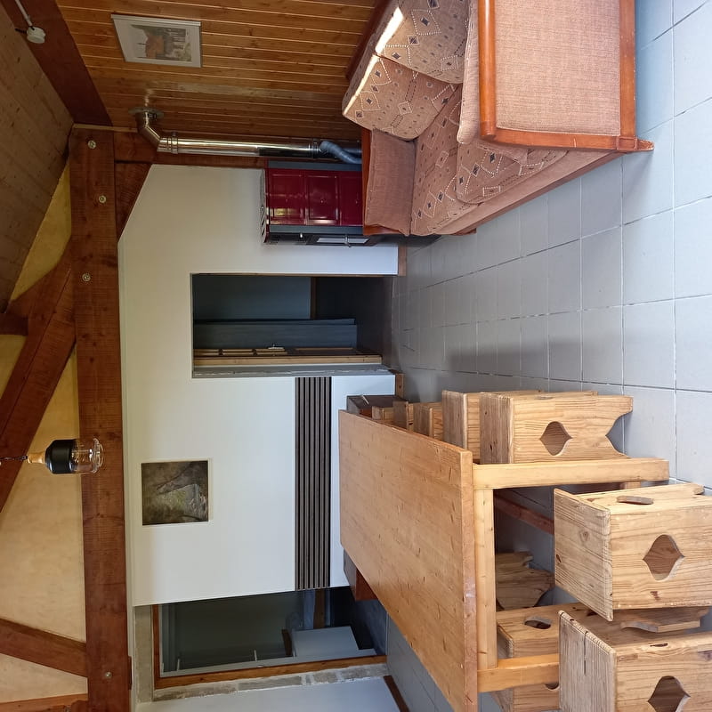 Gîte aménagé dans une ancienne demeure de 1650 ayant conservé son tuyé (cheminée), avec beaucoup de bois et de pierre, meublé en bois.
