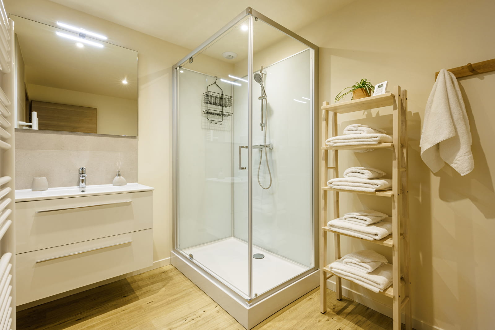 Les 5 chambres, dont une PMR, sont chacune pourvues de leur propre salle de bain et toilettes privatives.