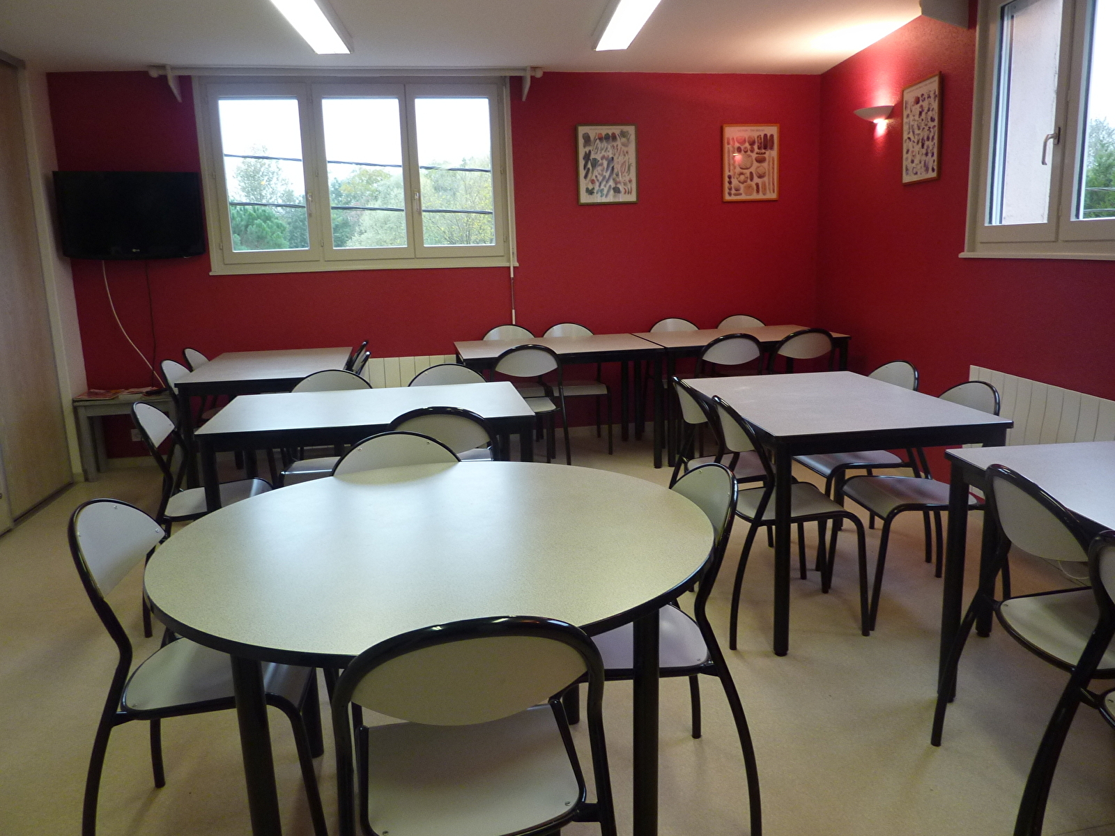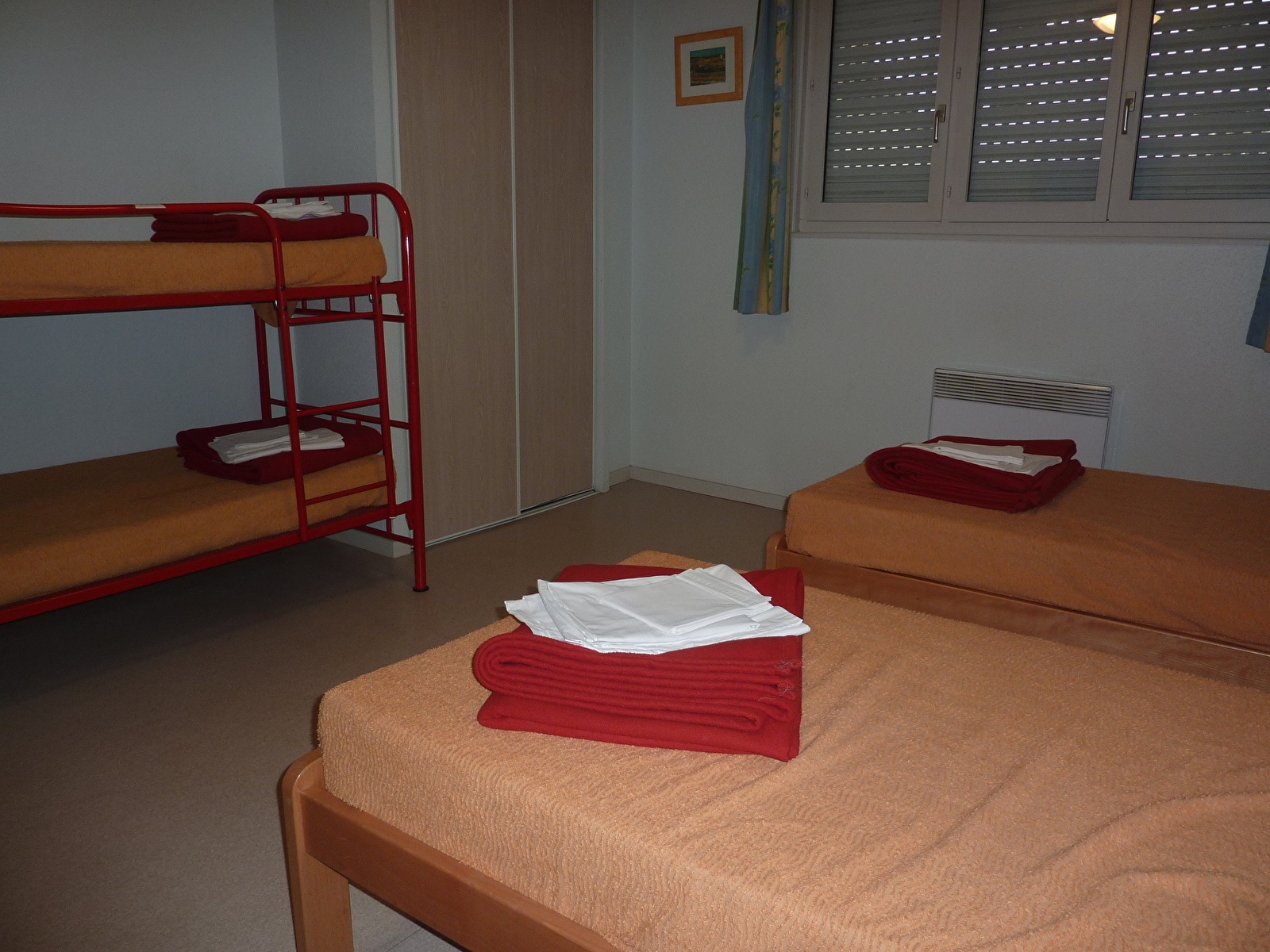 Gîte d'étape : 3 chambres de 4 personnes avec bloc sanitaire collectif, 4 chambres de 2 à 4 personnes équipées de salles d'eau privatives. 1 chambre accessible aux personnes handicapées au rez-de-chaussée avec salle d'eau adaptée, privative et attenante. Une salle commune avec un coin cuisine. Location en gestion libre possible. Draps inclus. Gîte complet pour le week-end à partir de 440€, taxe de séjour en sus.