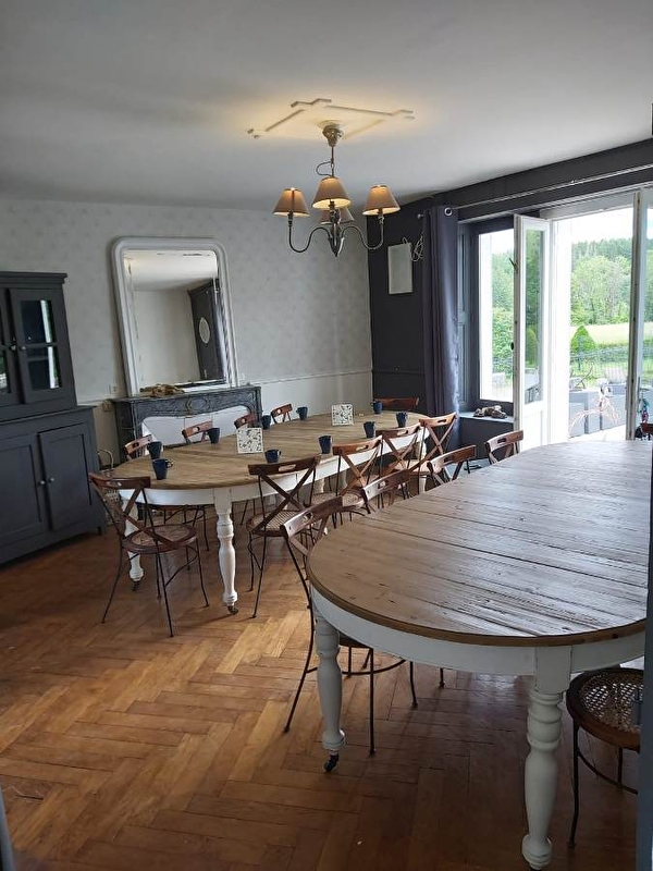 Jura Lac Emeraude est une maison bourgeoise au charme discret. Elle vous accueillera dans sa bâtisse en pierre et son atmosphère préservée au caractère vintage. Entièrement rénovée, blanche et rose veloutée, elle est douceur de vivre et paisibilité. Elle invite à vivre le bonheur simple d'une maison de famille aux multiples chambrées ou tous se retrouvent dans les salons communs et partagent de grandes tablées sur le parvis à l'ombre d'un if cinquantenaire. Jardin à la Française, fer forgé, parquet, espace, clarté, confort, elle est le goût de l'élégance en terre d'émeraude. Son lac bleuté à quelques pas vous enchantera comme chacun de ses voisins : Vouglans, Ilay, Narlay, le petit et grand maclu, étival, Bonlieu, Chalain, Coiselet…Joyaux naturels sertis de verdure pour un ravissement authentique. Au rez de chaussée : - Une chambre double - Une cuisine entièrement équipée - Un jardin à la Française avec mobilier de jardin, barbecue, transats. - Une salle à manger avec vue et ouverture sur le jardin - Un salon avec 4 canapés convertibles, une salle de bain, des toilettes séparés Au 1er étage : - Deux toilettes séparés - 4 chambres : une double et trois triples dont 2 avec salle de bain. - Chaque chambre dispose de rangements. Au 2éme étage: - Une chambre double avec 1 lit (140x190) Au sous sol : Buanderie équipée avec sèche linge, lave linge, congélateur, matériel de nettoyage : aspirateur, seau, serpillère, balai… Local à skis, vélos…. Possibilité d'avoir 4 couchages supplémentaires avec une airstream installée dans le jardin (caravane américaine). Parking : 4 places en épi devant le gîte plus un parking coté rue. L'environnement proche dans un quartier tranquille permet en sortant du gîte de courir, pratiquer des jeux de ballon, de jouer à la pétanque… et de rejoindre le centre ville en 5 minutes à pied et/ou le lac en 10 minutes.