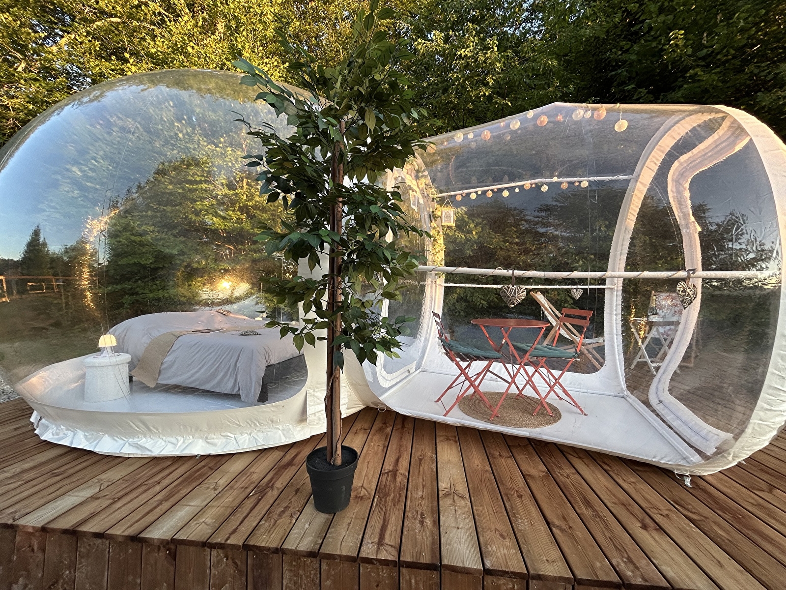 Notre capacité d’accueil s’étend jusqu’à 48 personnes, avec un large choix d’hébergements confortables et atypiques : chambres familiales, cabanes trappeurs, bulles transparentes, maisons indépendantes…