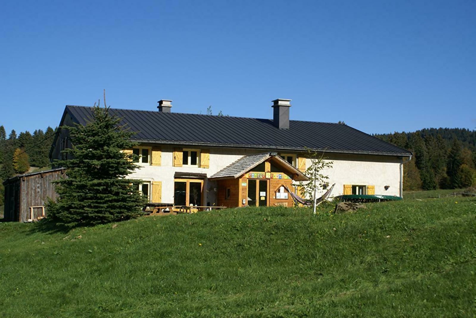 Ancienne et grande ferme rénovée en totalité et situé au coeur d'une nature authentique et préservée, dans laquelle sont aménagées 8 chambres de 2,3,4 et 5 pl, 1 dortoir 9 places, 4 douches, 4 WC, une grande salle commune avec coin salon et cheminée,bibliothèque, jardin, parking l'hiver(à 400m). Sur les tracés de la GTJ ski de fond, raquettes et GTJ équestre. GTJ VTT à proximité, nombreux circuits VTT, GR5, GR9. Prêt de cartes et topo-guides pour vos randos au départ du gîte. Patinoire et école nationale de ski de fond à Prémanon. Relais étape du Grand Huit, accueil des chevaux en pré. Animaux acceptés l'été uniquement. Tarifs réduits pour les groupes et les enfants de - de 10 ans. Tente trappeur de 3 lits, en formule dortoir (vous apportez vos draps) ou en formule chambre (les draps sont fournis) Location du gîte en gestion libre exemple du samedi 14h au dimanche 14h 800€ hors couchage et forfait ménage. Les animaux sont acceptés, sauf l'hiver, pas de supplément, pas en dortoirs