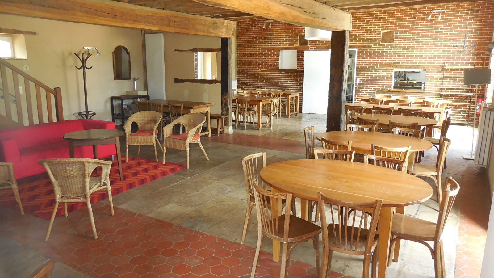 En continuité, la salle à manger de caractère, vous permettra d'asseoir 53 personnes et de garder un espace pour une soirée dansante.