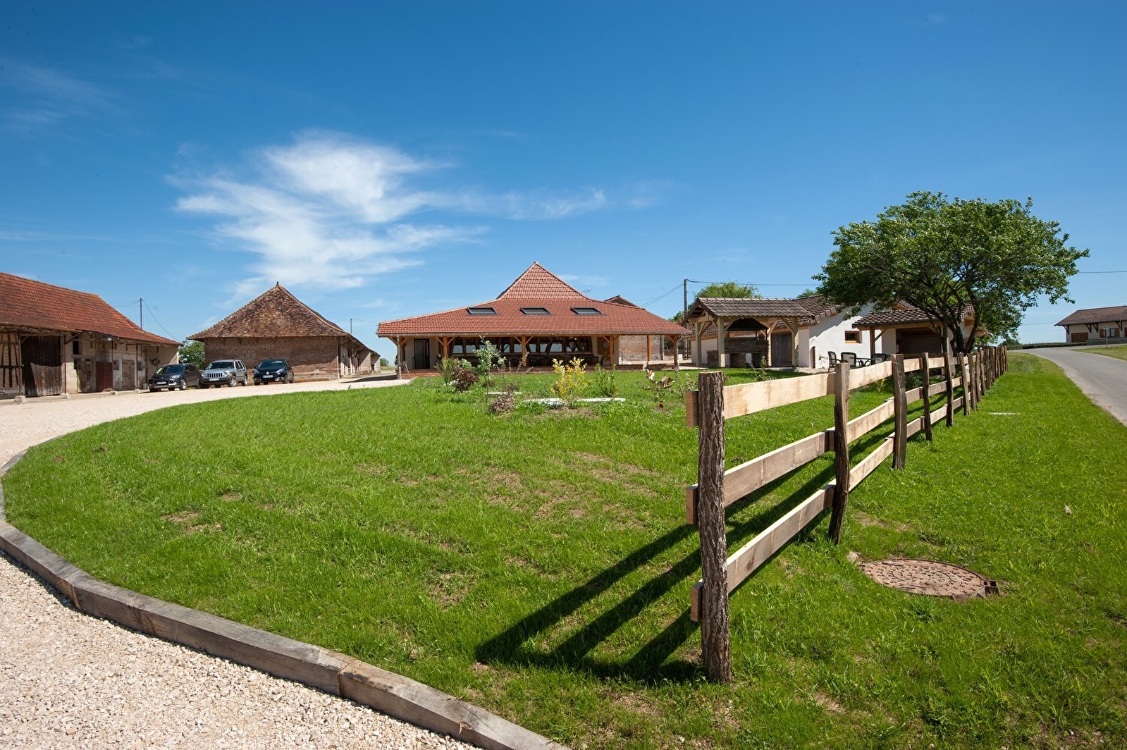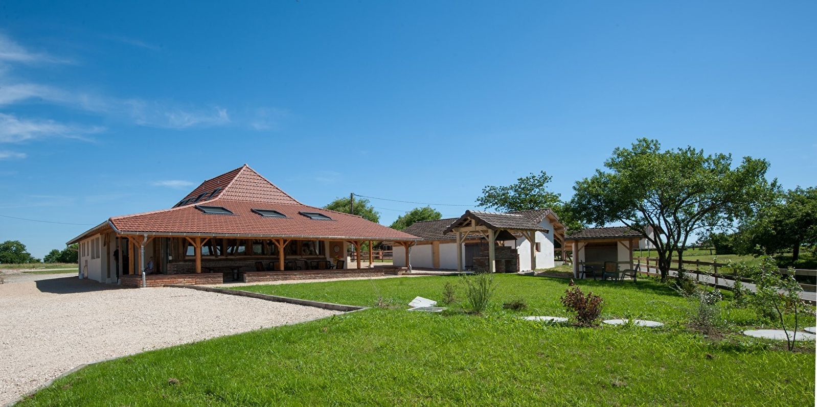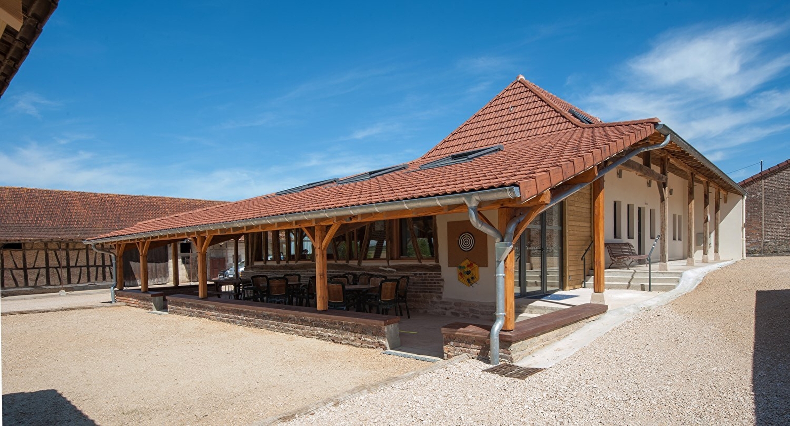 Élégante ferme bressane traditionnelle du XIXe, à briques & pans de bois, intégralement restaurée avec soins, sise au calme sur un ancien domaine agricole réhabilité, au creux d’un paisible mini hameau rural. Totale tranquillité, blotti en pleine campagne louhannaise, en lisière de champs, forêts et prairies, entre agriculture & pleine nature, non loin du centre du village, charmant bourg typique riche d’un bucolique étang de pêche parfaitement aménagé (paillote, table pique-nique, parcours santé, terrain pétanque, sentier de pleine nature). Belle propriété de 1500m² proposant une terrasse panoramique abritée de 35m², une grande cour, un exceptionnel terrain de pétanque "éclairé" (nocturnes possibles !) et un agréable jardin engazonné. Belle vue dégagée sur la douce campagne environnante. Ravissant panorama & paysages. Nombreux équipements de loisirs : baby-foot, badminton, mini ping-pong, molkky etc… avec d’insolites jeux traditionnels en bois en bonus (billard hollandais, passe-trappe & montagnes russes). Très bon confort. Spacieuse & lumineuse pièce de vie de 90m² dotée d’un beau volume, au chaleureux cachet campagnard sublimé par une belle restauration patrimoniale (charpente, colombages & briques d’origine). Chambres avec salles d’eau privatives, aménagées dans un esprit contemporain très zen, dont certaines lovées sous les toits en mode "cocon".