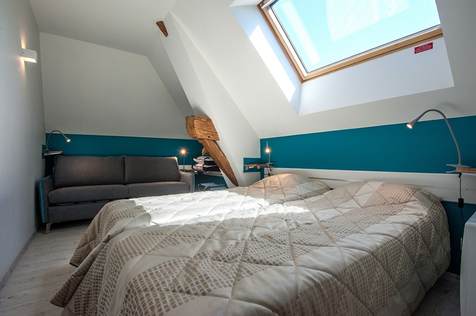 Composition : Maison individuelle. Wifi. Chauffage électrique. Rdc : séjour-cuisine-salon (cuisine professionnelle), 3 chambres dont 1 PMR & 1 accessible par l’extérieur (2 lits 1 p 80x200cm / 2 lits 1 p 80x200cm + convertible 2 p. 160x190cm / 2 lits 1 p 80x200cm) avec sde privatives (douche-Wc / dt une "sur palier"), 2 Wcs indépendants. 1er étage : 3 chambres (2 lits 1 p 80x200cm + conv. 2 p. 160x190cm / 4 lits 1 p 80x200cm / 2 lits 1 p 80x200cm + conv. 2 p. 160x190cm) avec sde privatives (douches), Wc indépendant. Terrain (1500m²) + terrasse abritée + local vélos + parking privés. Commerces (dont Supermarché) 10 km.