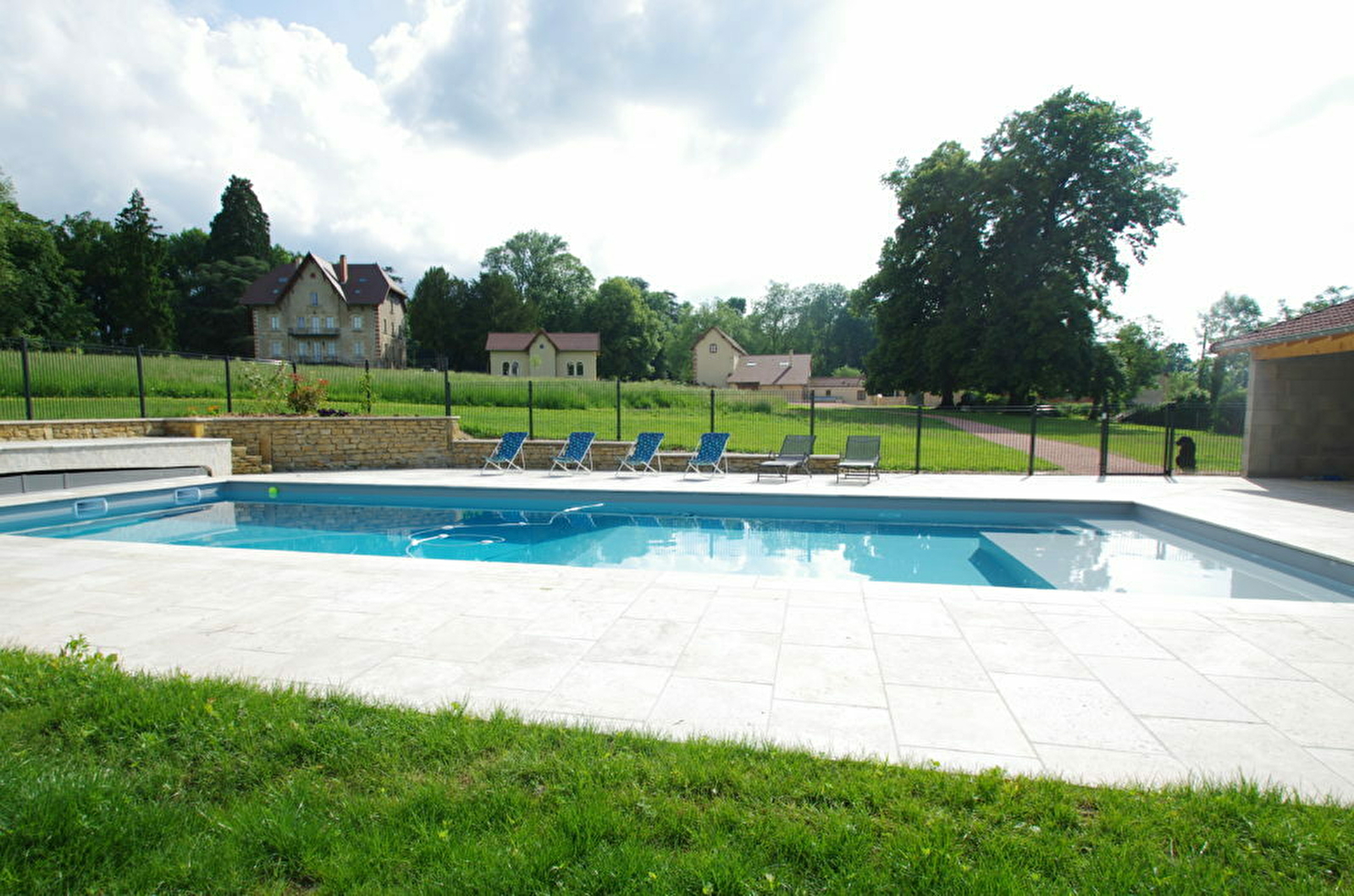 Le logement est au sein d'un grand parc de 6 hectares, avec piscine de 15 x 5 chauffée et sécurisée, terrasse et cour privative.
