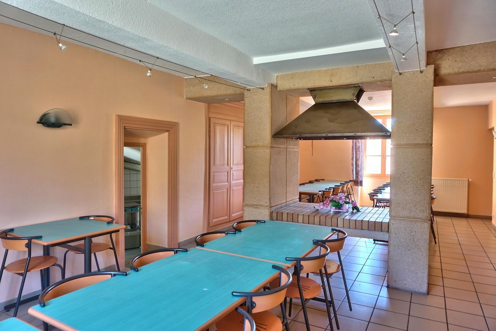 Composition : Maison mitoyenne. Chauffage central fioul. Wifi (fibre). Rdc : Cuisine professionnelle, séjour (réfectoire), salon TV, chambre PMR (lit 1 p. 90x190cm + lit 1 p. 100x200cm) avec salle d'eau privée (douche), Wc indépendant. 1er étage : 4 chambres (4 lits 1 p. 90x190cm / 2 lits 1 p. 90x190cm / 4 lits 1 p. 90x190cm dont 2 superposés / 5 lits 1 p. 90x190cm dont 2 x 2 sup.) avec sde privées (douche/Wc). 2ème étage : 1 chambre + 2 dortoirs (2 lits 1 p. 90x190cm / 12 lits 1 p. 90x190cm en 6 x 2 sup. / 8 lits 1 p. 90x190cm en 4 x 2 sup.) avec sde privées (2 douches + Wc indépendants / douche + Wc indépendant). Terrain clos (2500m²) + local vélos privatifs. Parking public gratuit aisé sur place. Supérette 300m. Supermarchés 10 km.