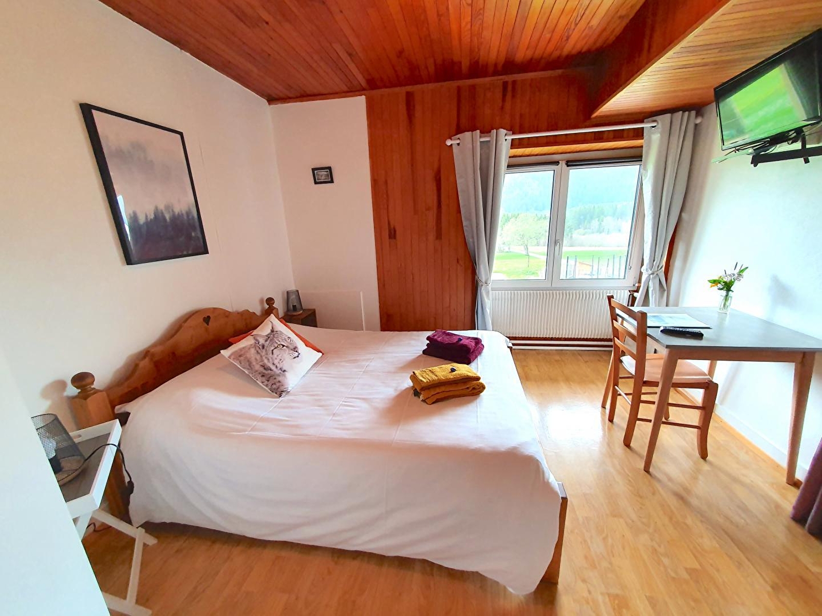 Situé entre les Rousses et Bois d'Amont, au pied des pistes de ski nordique et à 200m du lac des Rousses, ce gîte d'étape et de séjour vous accueillera chaleureusement dans des chambres rénovées pour 2 à 4 personnes qui disposent de sanitaires privés (cabine de douche et WC) et TV. Au rez de chaussée, la grande salle à manger avec son coin salon est idéale pour partager les repas. Au 2ème étage salle de jeux avec baby-foot, jeux de société et livres. Côté extérieur : terrasse avec table de jardin, terrain de volley, table de ping-pong et terrain de pétanque. Idéalement situé pour le ski, la randonnée avec de nombreux sentiers à proximité (GR5 et Grande Traversée du Jura, etc...). Repas proposés un soir su 2 sur réservation auprès de la propriétaire : les produits locaux et les plats typique du Jura sont privilégiés, possibilité également de panier pique-nique. Réduction tarifs pour les enfants. Pas de gestion libre.