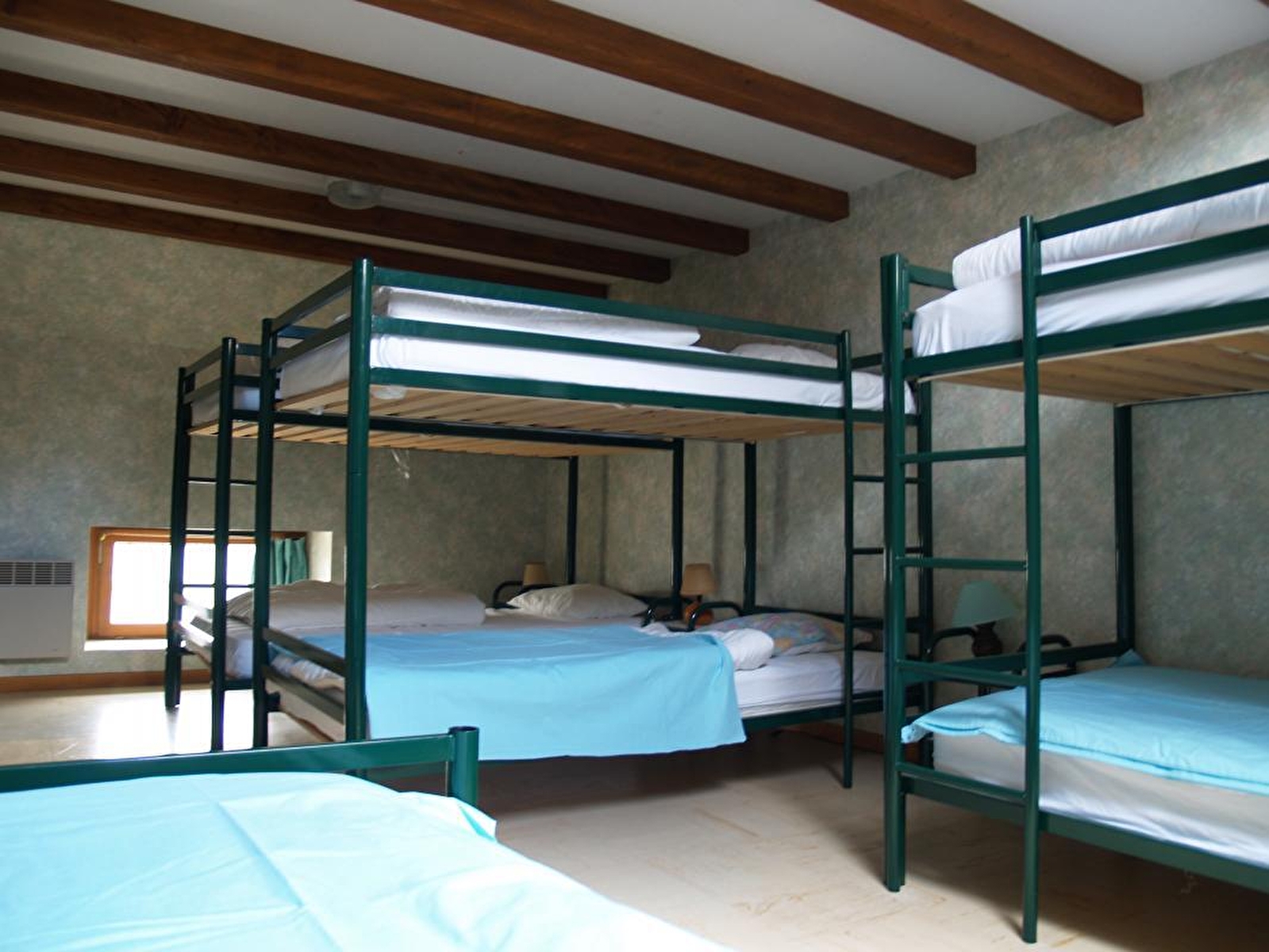 Composition : Maison individuelle. Wifi (fibre). Chauffage central gaz (+ électrique dans chambres). Rdc : cuisine, salon, séjour (équipé d'un écran de projection), 2 espaces douches (indépendantes), 2 Wc indépendants (dont PMR). 1er étage : 6 chambres (3 comprenant 1 lit 2 p. 140190cm / 2 lits 1 p. 90x190cm / 3 lits 1 p. 90x190cm dont 2 superposés / 7 lits 1 p. 90x190cm dont 3 x 2 superposés avec 2 lavabos indépendants), salle d'eau (douche), 2 espaces lavabos, 2 Wc indépendants. Terrasse + terrasse couverte + espace repas abrité sous tente + terrain clos (cour & jardinets) + parking privés. Petits commerces & supermarché 10 km.