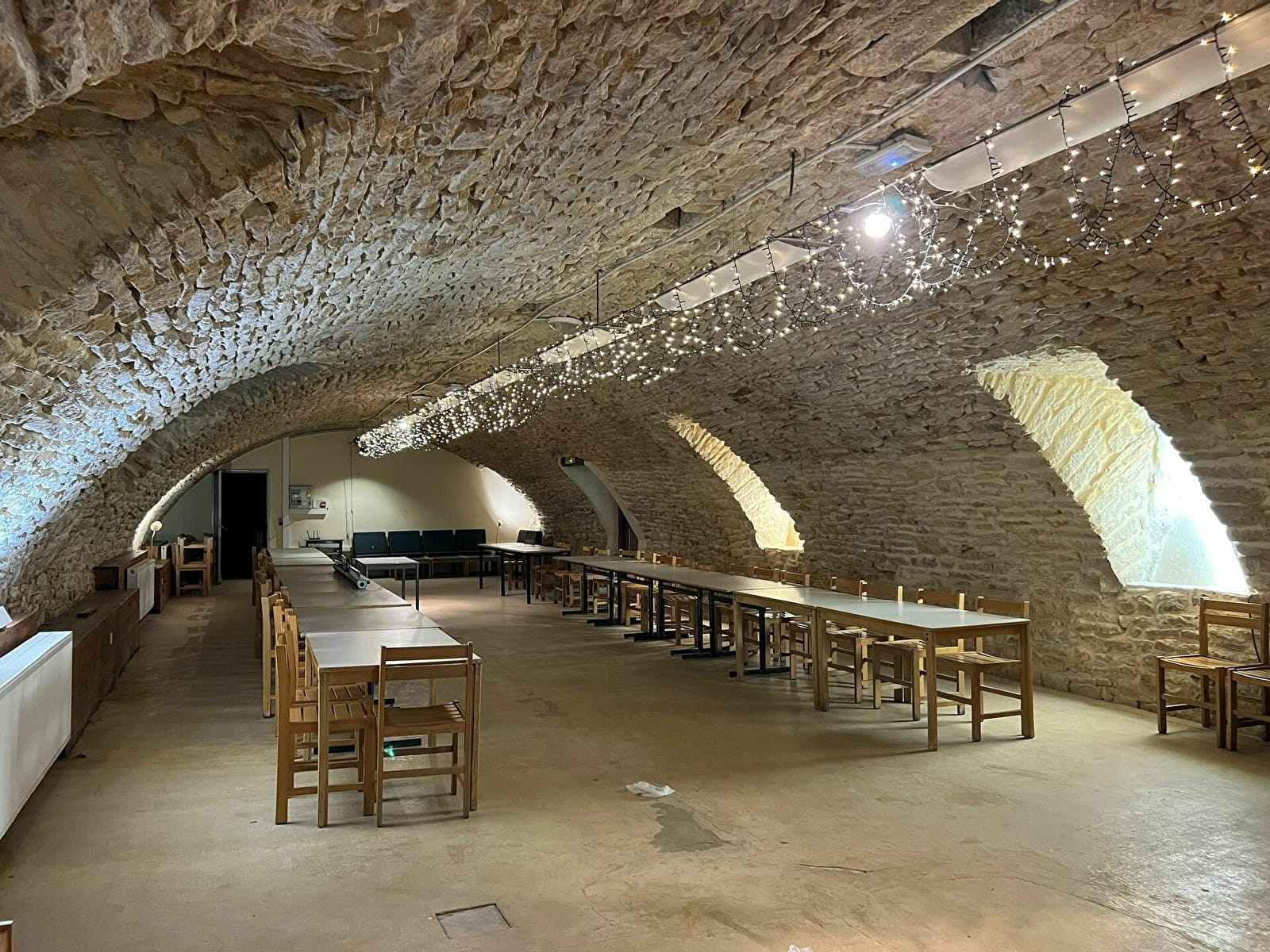 Pour vos repas, la salle à manger de 120 m² est à votre disposition. Vous pourrez choisir de préparer vous-même vos repas en autonomie dans nos cuisines professionnelles, ou bien opter pour la formule pension complète, notre partenaire traiteur du moment se chargera de régaler vos papilles ! Nous nous adaptons à vos besoins pour un séjour qui vous correspond, petit-déjeuner compris ou non, repas végétarien, carné, vegan ou sans gluten, dites-nous ce qui vous convient !