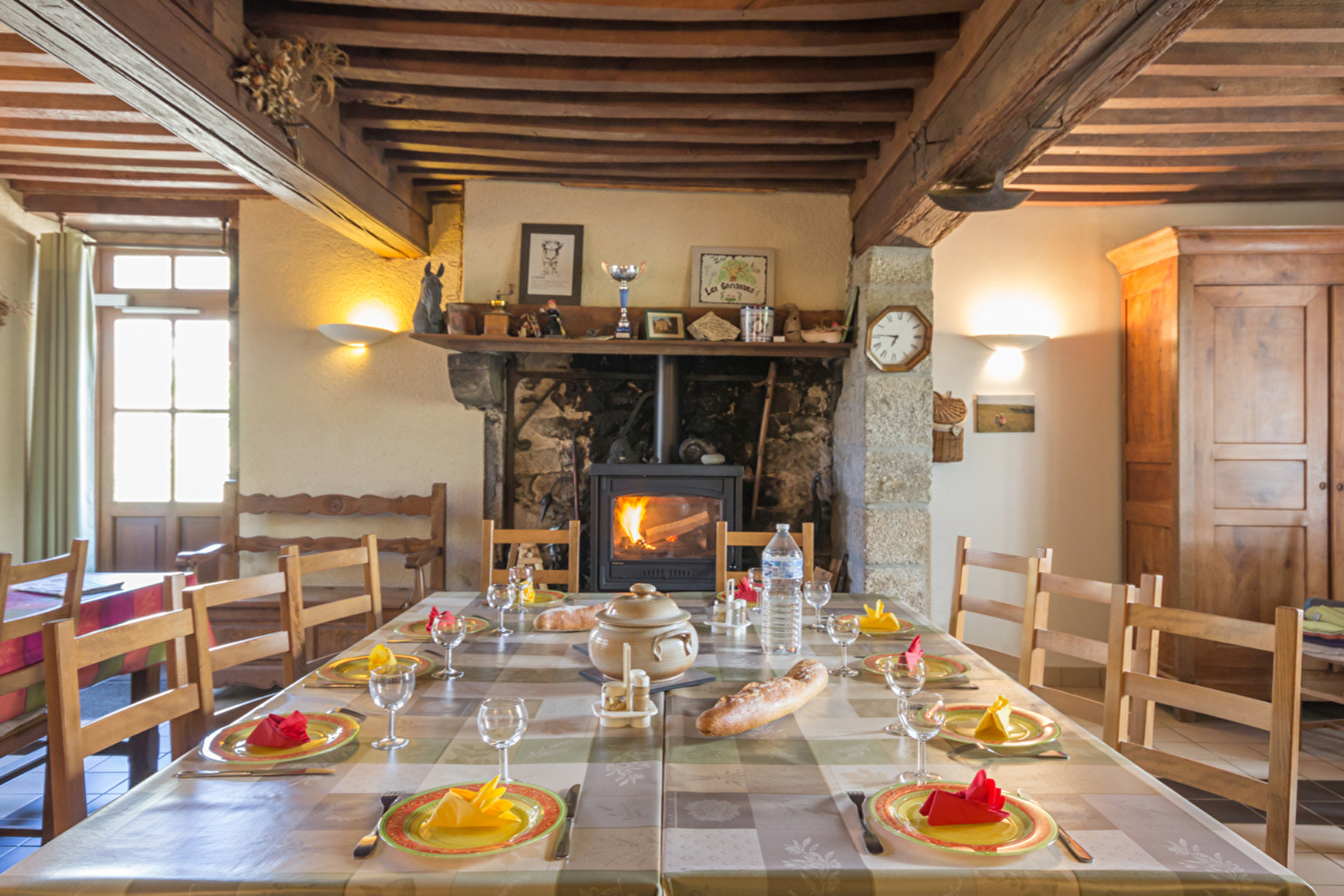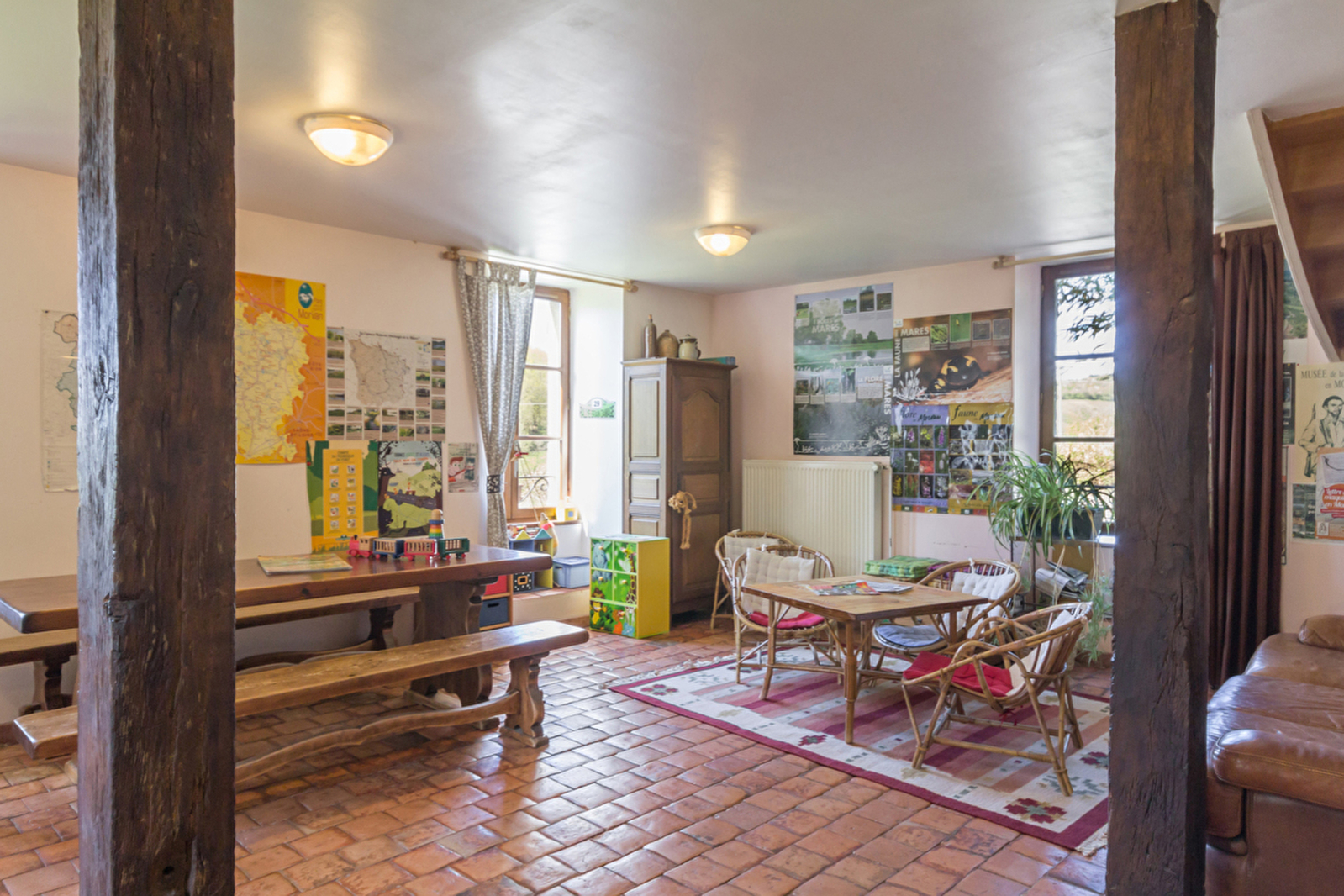 Gîte 15 places avec 6 chambres: deux chambres double avec un lit bébé, deux chambres avec 1 lit simple, une chambre famille avec 5 lits individuels et une chambre de 4 lits simples. Pour votre confort, un chauffage central au gaz, 2 salles d'eau, 5 douches, 5 wc. La salle à manger avec son passe plat livrant les petits plats concoctés par vos soins dans une cuisine type collectivité possédant un piano avec 5 feux et 2 fours électrique, un micro-onde, un frigidaire, un congélateur et le nécessaire en électro portable. Meubles de jardin. Accueil de chevaux. Taxe séjour: 0.55 € par jour et par adulte. Location de draps 7€ / lit et linge de toilette 5€ / personne, forfait ménage 100€. Situé sur la bordure Ouest du Morvan, commune typique du Morvan de par son paysage de bocage. Nous vous accueillerons dans une bâtisse ayant préservé son architecture et son environnement. Elle vous offre un havre de tranquillité aux milieux des prés.
