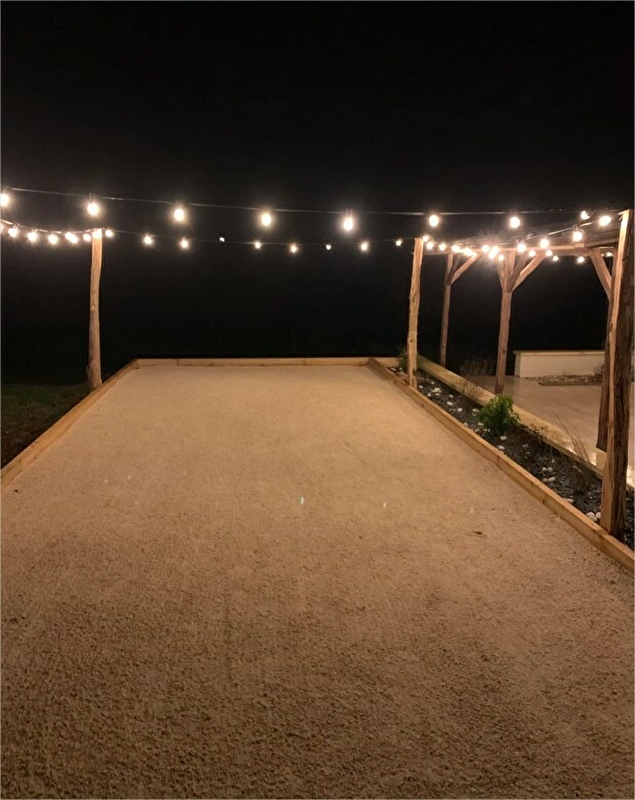 En extérieur, tout ce qu'il faut pour passer un moment convivial entre amis, familles ou collègues : une piscine chauffée avec plus de 10 transats, un terrain de padel, un terrain de pétanque à côté du barbecue.. mais aussi trampoline, balançoire, Frisbee et Mölkki.
