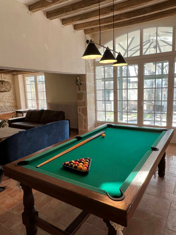 La Maison Héléna, c'est une maison au concept d'hellofriends, une maison au vert mais proche de Paris (2h seulement), idéalement pensée et aménagée pour les familles et groupes d'amis. L'équipement est moderne, fonctionnel et adapté aux grands groupes : 2 tables (intérieur et extérieur) de plus de 3m pour accueillir 15 personnes, 2 salons, une grande cuisine avec 2 réfrigérateurs, 6 plaques, appareils à raclettes et fondues. Une véranda pour prendre son café et une grande salle de jeux pour les petits et grands enfants. Chaque chambre a sa salle de bain. Il y a également 6 toilettes.
