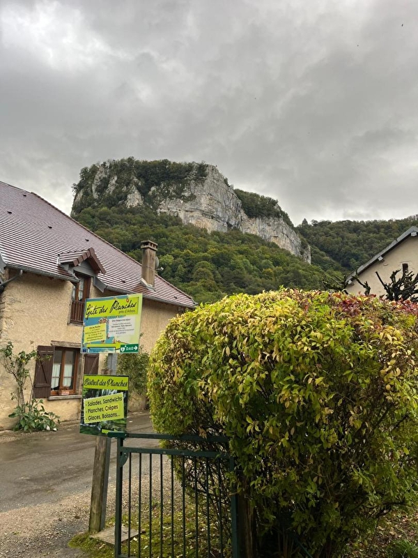 Situé à proximité de la Cascade des Tufs, le gîte des Planches d'une capacité de 28 personnes sera le lieu idéal pour partager des moments conviviaux en famille ou entre amis. Vous disposerez de tout le confort nécessaire pour passer un agréable séjour : Au rez-de-chaussée : petit coin salon avec TV, grande salle à manger, cuisine entièrement équipée (piano, frigo-congélateur, lave-vaisselle), WC Au 1er étage : 1 chambre pour 4 personnes avec 4 lits simples (dont 2 lits superposés) - un dortoir 8 personnes 2 lits simples superposés et 2 lits doubles 140*190 (superposés) - 1 chambre pour 6 personnes avec 2 lits superposés 90*190, 1 lit mezzanine 140*190, 1 lit 90 *190 et 1 lit gigogne - 1 WC indépendant - 1 salle d'eau avec 3 douches indépendantes Au 2ème étage : 1 chambre avec 4 lits simples (lits superposés) - 1 chambre avec 2 lits simples (90*190) - 1 chambre avec 2 lits simples 90*190 et un canapé convertible (140*190) - 1 WC indépendant - 1 douche Côté extérieur, vous pourrez profiter d'un grand jardin avec terrain de pétanque et filet de volley Parking sur place au sein de la propriété. Une salle de séminaire est disponible pour la location en totalité du gîte. Des séjours en demi-pension peuvent être organisés sur réservation auprès du propriétaire, qui possède également le bistrot des Planches. Pour les randonneurs, possibilité de paniers repas. Idéalement situé, à proximité des sentiers de randonnées et à 10 mns d'Arbois, capitale des vins du Jura.
