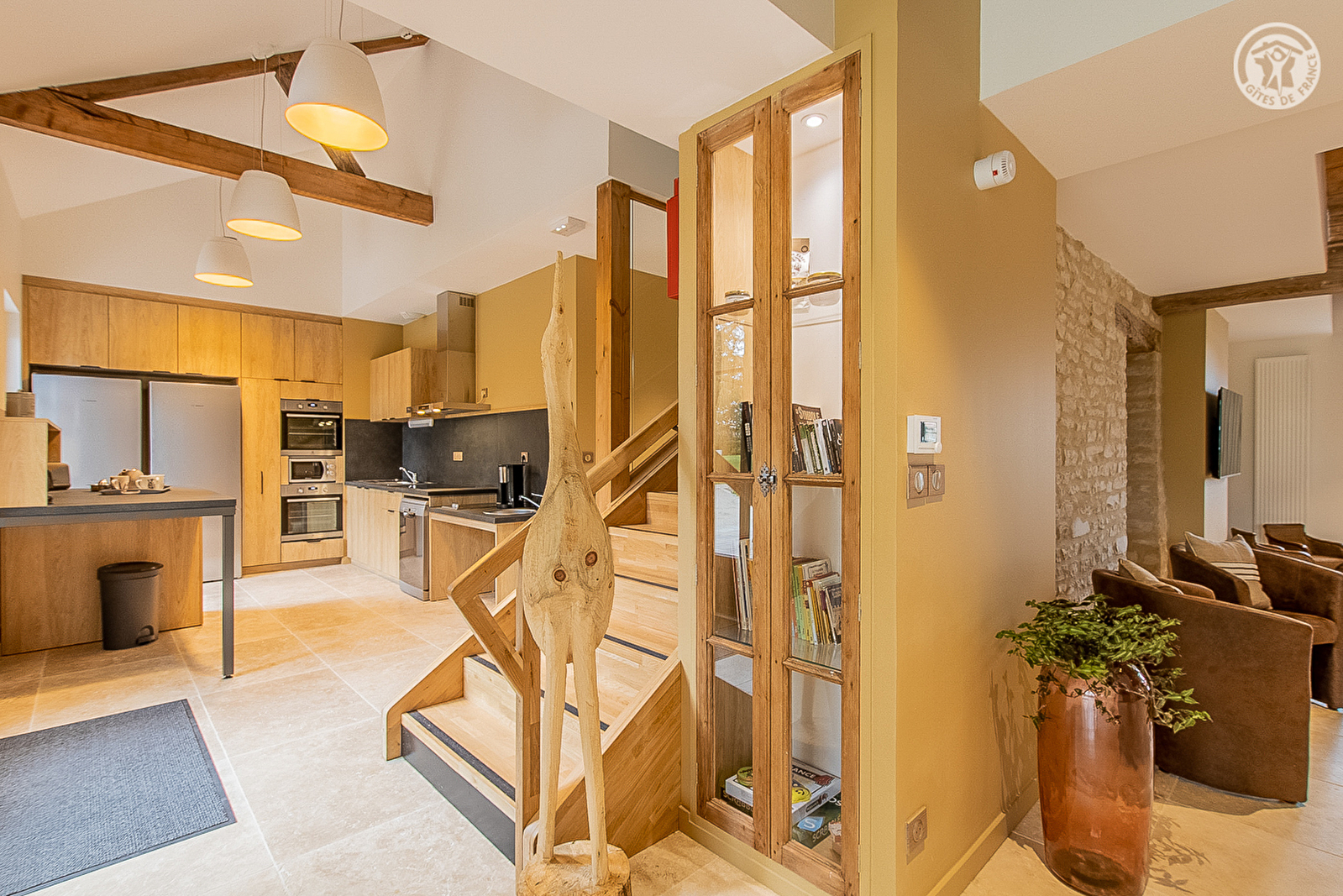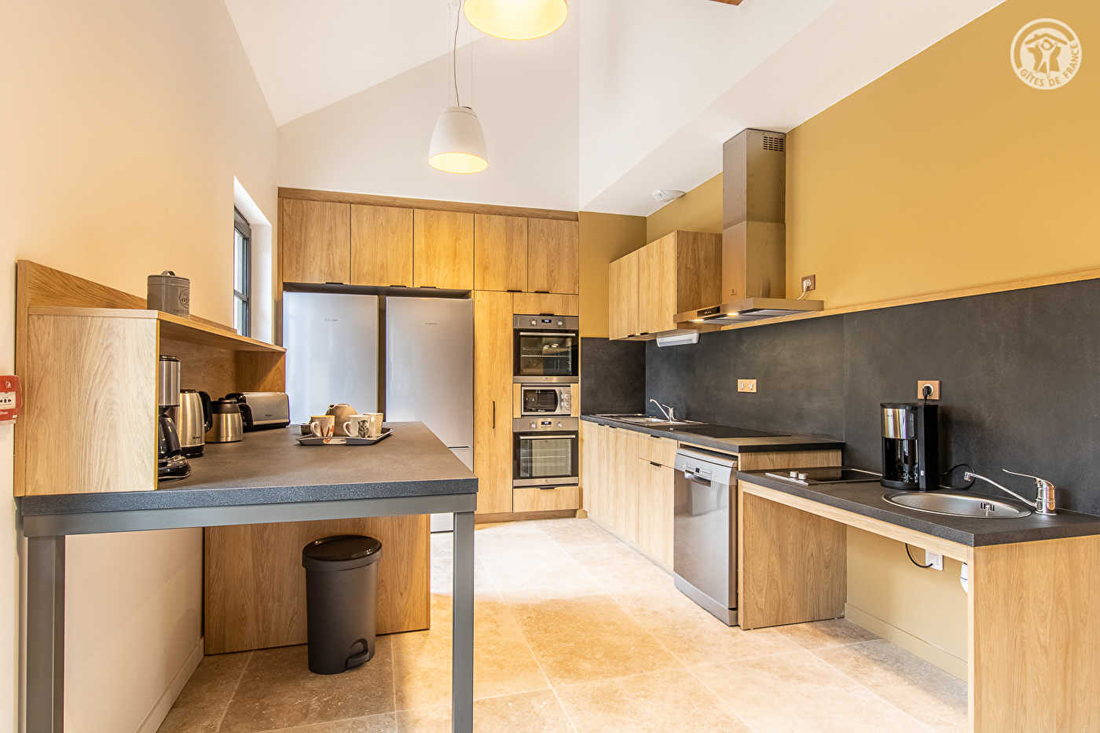 Composition : Maison comprenant un gîte communal + petite salle communale de réunion (salle séminaire possible). Wifi. Téléphone fixe. Chauffage central gaz. Rdc : séjour-cuisine-salon, 2 chambres dt 1 PMR (lit 2 p. 160x200cm / 2 lits 2 p. 140x200cm + lit 1 p. 90x200cm) avec sde privée (douche/wc) dt 1 PMR, Wc PMR indépendant, buanderie. 1er étage : 4 chambres (2 avec 1 lit 2 p. 140x200cm / lit 2 p. 140x200cm + lit 1 p. 90x200cm / 4 x 2 lits 1 p. 90x200cm superposés) avec sde privée (douche/Wc) dt 2 sur palier, wc indépendant. 2ème ét. : 1 chambre (3 lits 1 p. 90x200cm) avec sde privée (douche/Wc). Terrasse + jardin + terrain de pétanque privés. Parking public aisé sur place. Supermarché 5 km. Toutes commodités 17 km. Accueil gratuit des "chiens guides". Gîte labellisé "Tourisme & Handicap".