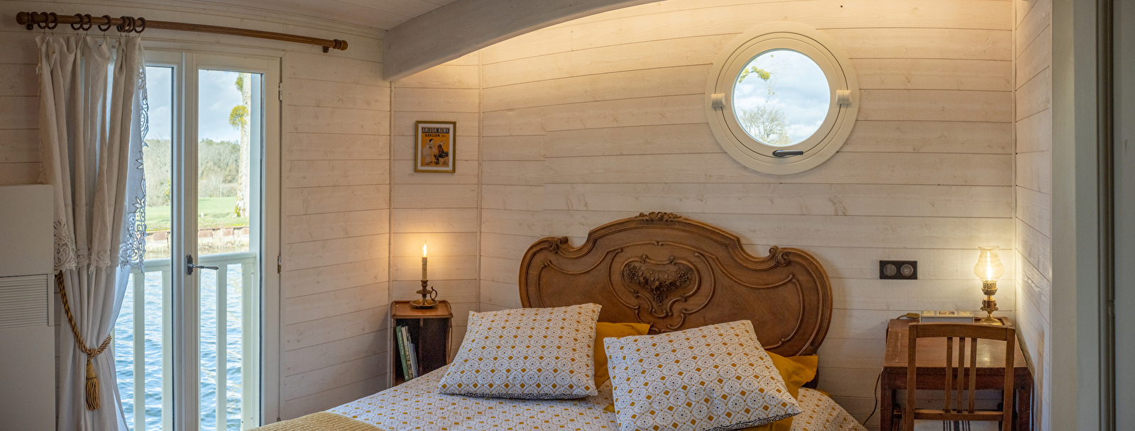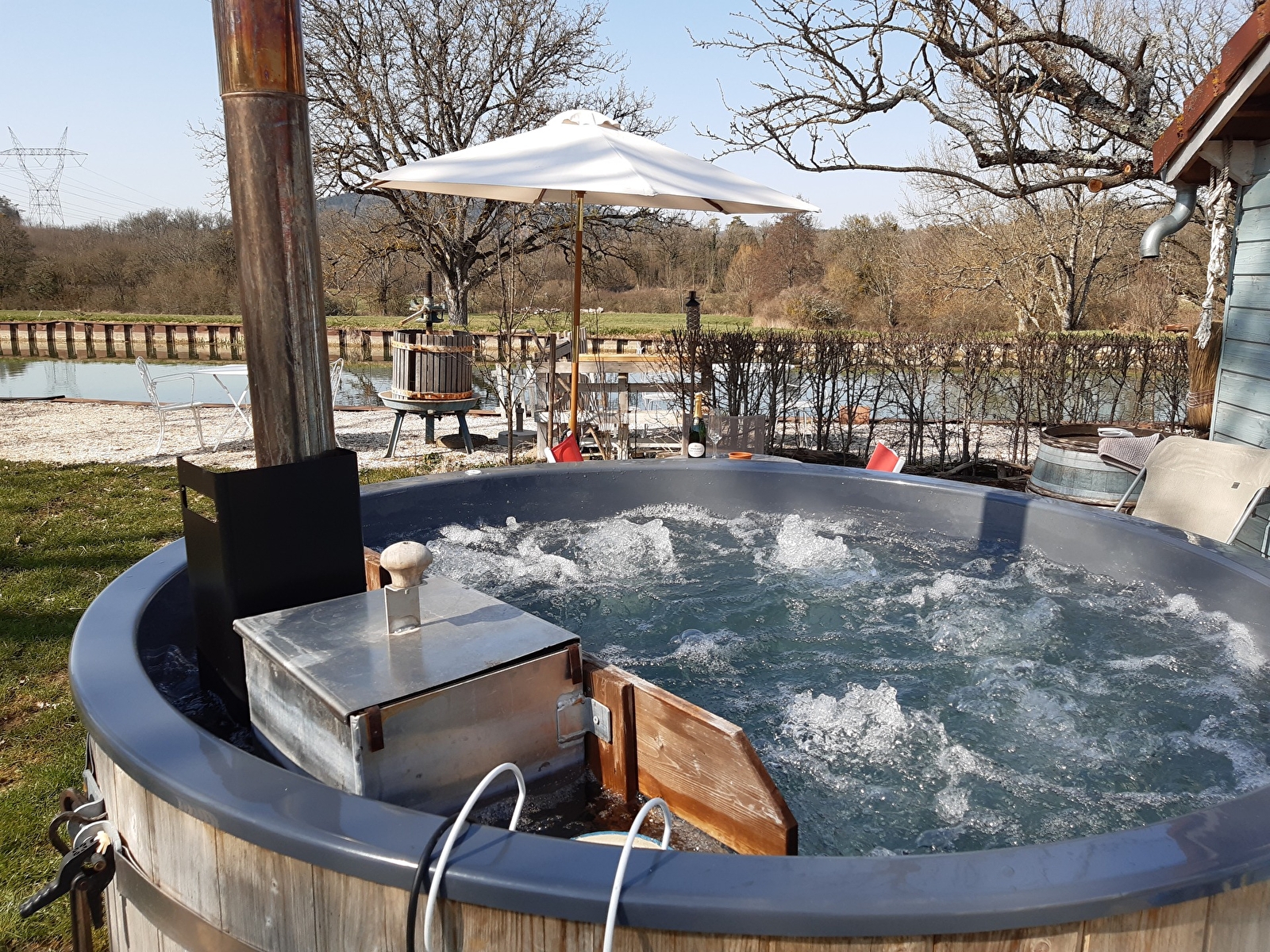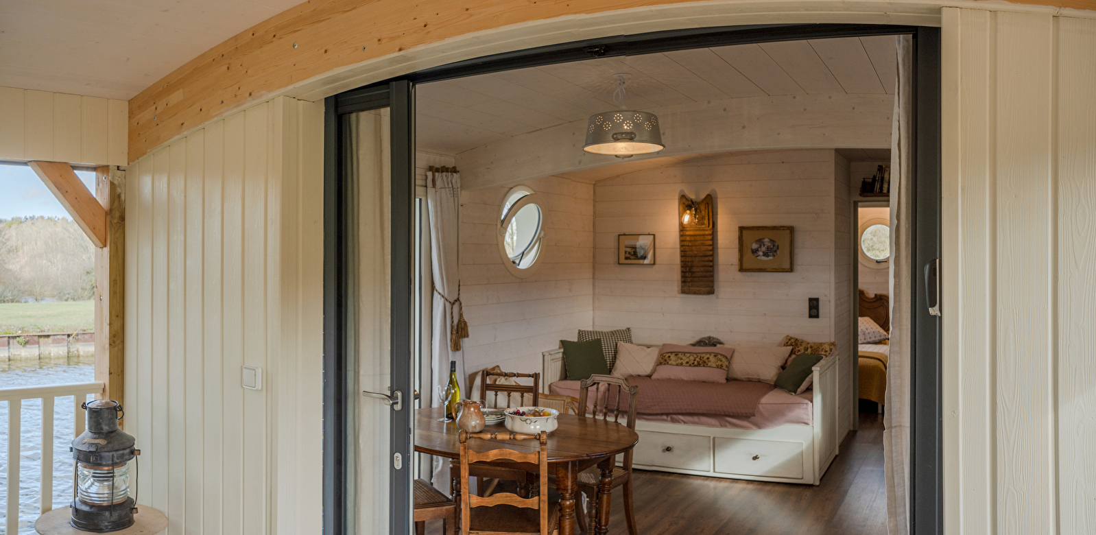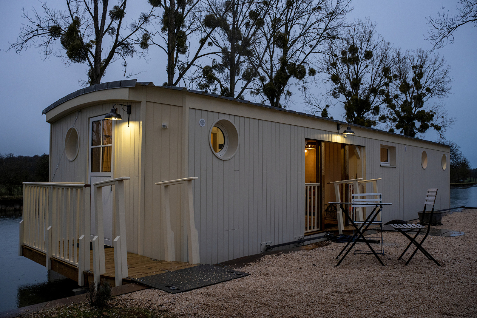 « Bateau Lavoir La34S. », amarré à quai en pleine nature amont de l'écluse 34S. du Banet dans la pittoresque Vallée de l'Ouche. Un hébergement insolite écologique de 65 m2, modulable pour accommoder 2 à 6 personnes, conçu dans le style des bateaux lavoir du 19ème et équipé avec le confort de nos jours.