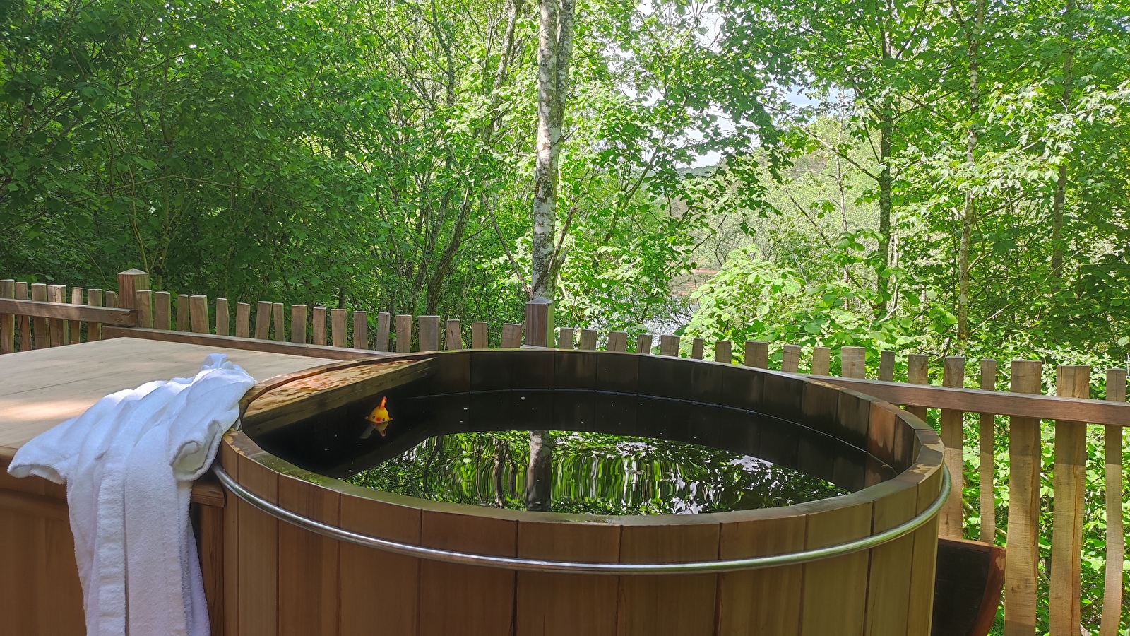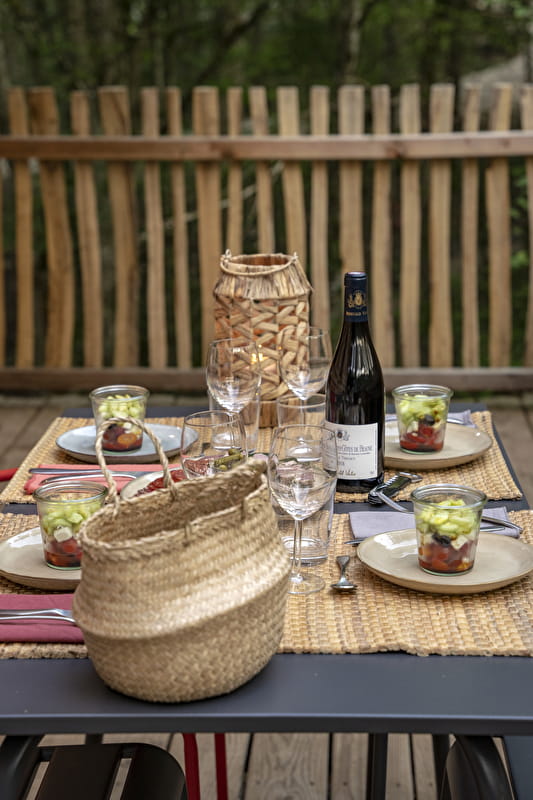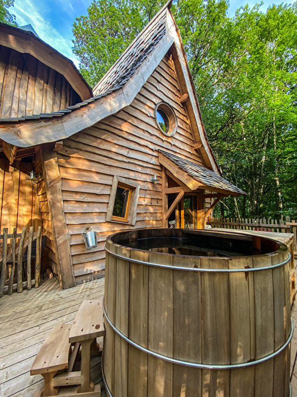 Ce petit château à l’allure féerique est accessible par un double escalier. Dès votre arrivée, sur la terrasse perchée à 6 mètres du sol, vous serez tentés par une séance dans le bain nordique.