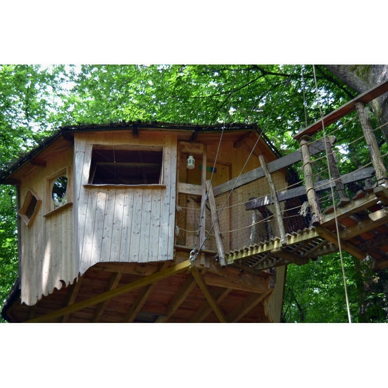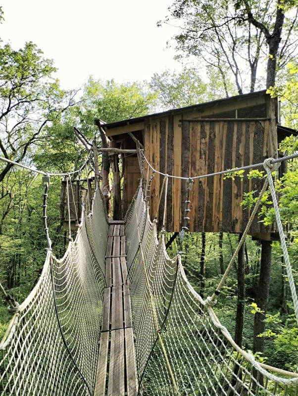 Les 6 cabanes ont chacune leur particularité, plus ou moins hautes avec différents accès par des échelles, des escaliers et des ponts de singes. Elles peuvent accueillir de 2 à 6 personnes et offrent des instants hors du temps et cachées au cœur de la forêt perchées jusqu’à 10 mètres de hauteur.
