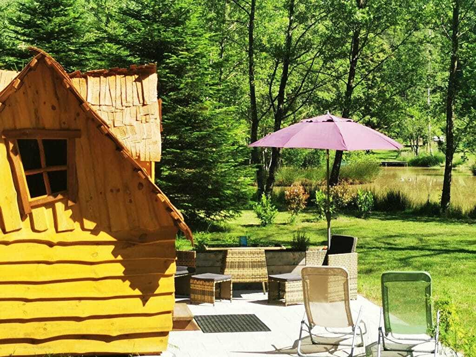 Dès votre arrivée, vous disposerez d’un espace douche privatif chauffé à proximité de votre logement. À l’extérieur, profitez d’une pergola avec table et barbecue, idéale pour partager un repas convivial en plein air, et d’aménagements pour petits et grands : un terrain de pétanque, une aire de jeux pour enfants… et même un étang.