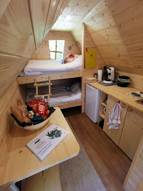 Offrez-vous une pause en famille, loin du tumulte du quotidien, dans notre cabane pour 4 personnes (2 adultes et 2 enfants ou 3 adultes), nichée au cœur d’une nature généreuse. C’est l’endroit idéal pour vivre des moments privilégiés avec vos proches, dans un cadre enchanteur et sécurisé.