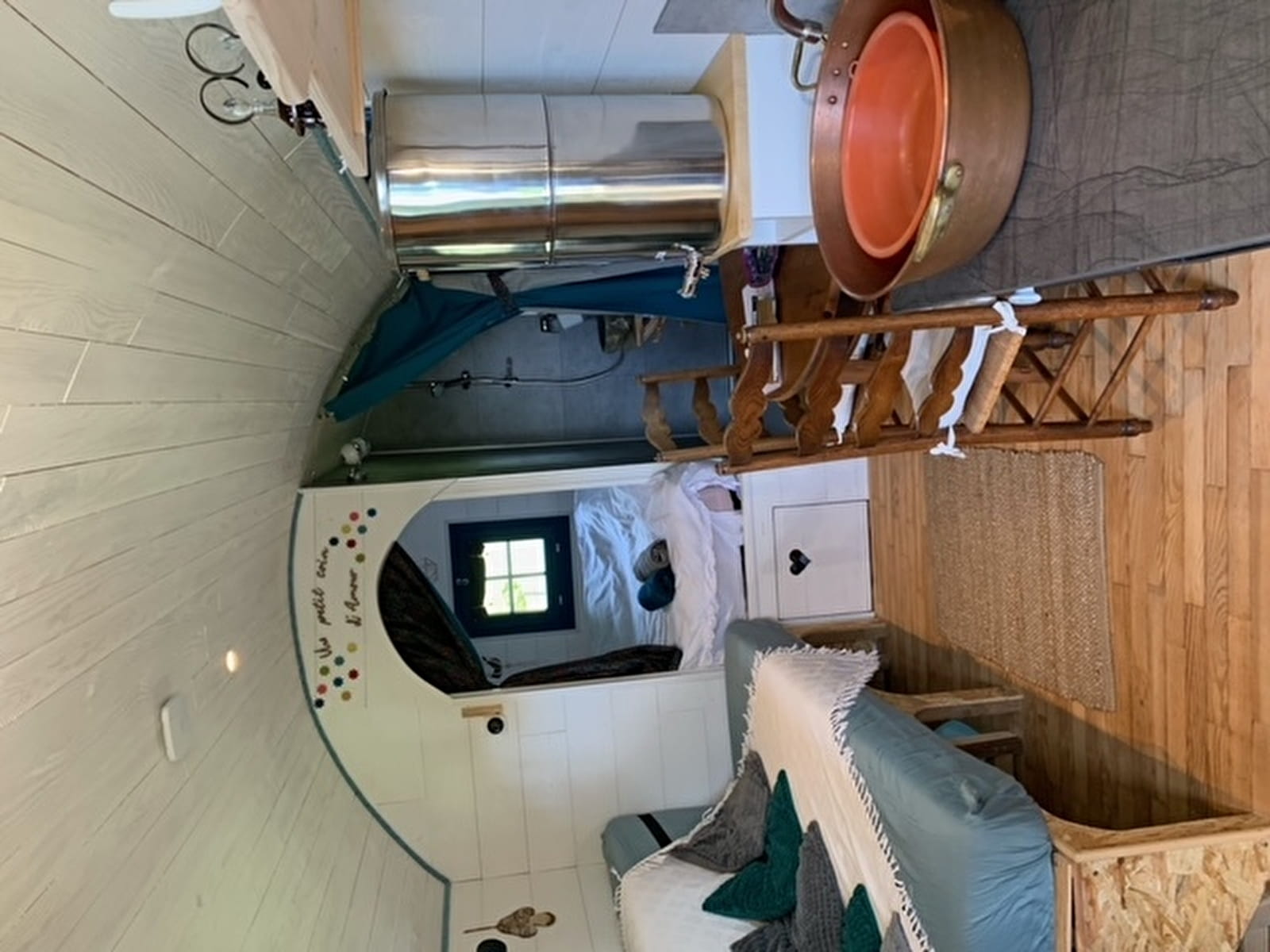 Venez vous ressourcer en couple ou en famille dans cette jolie roulotte, entièrement construite par la propriétaire !