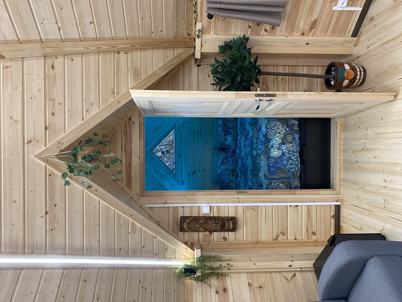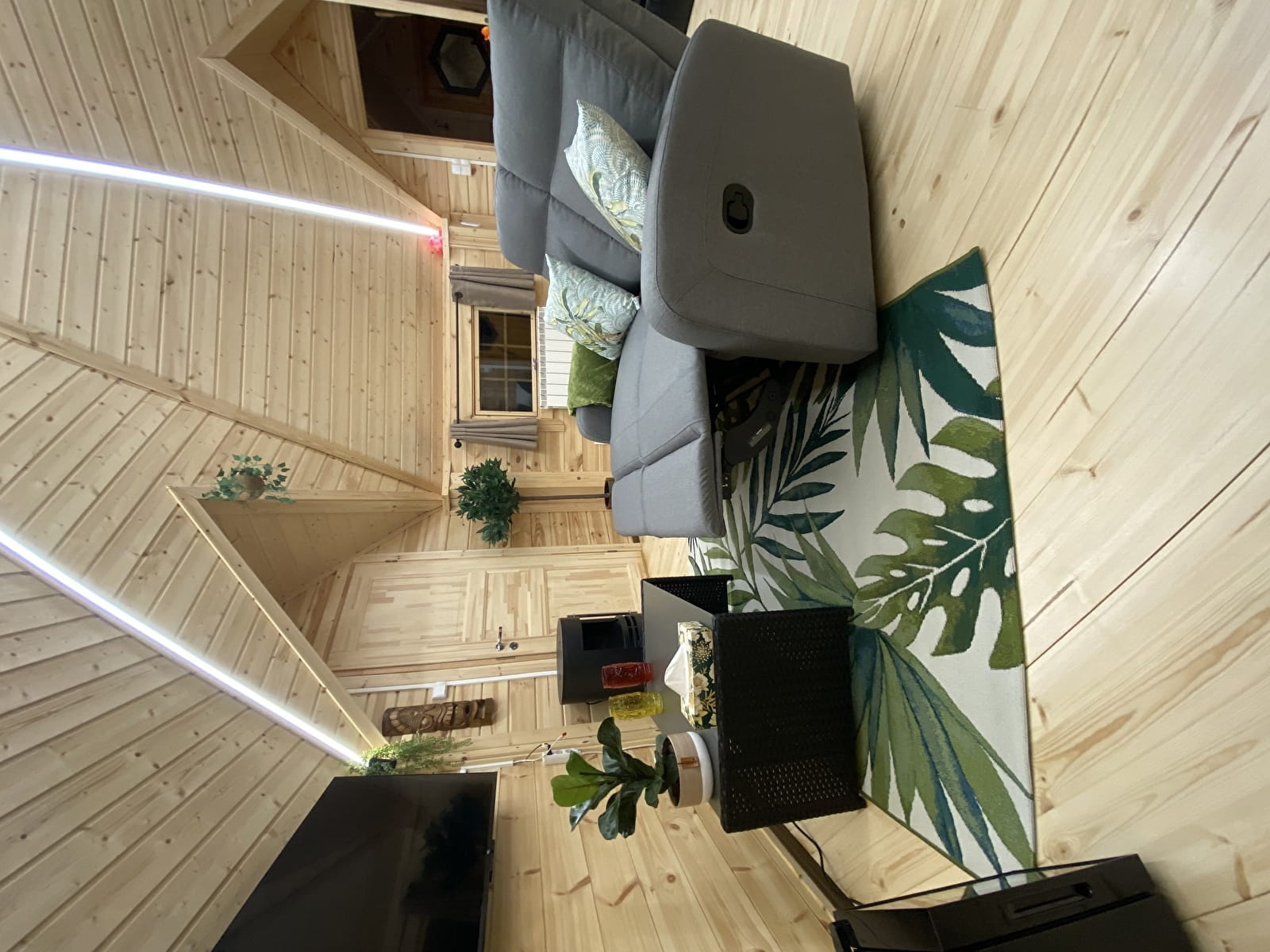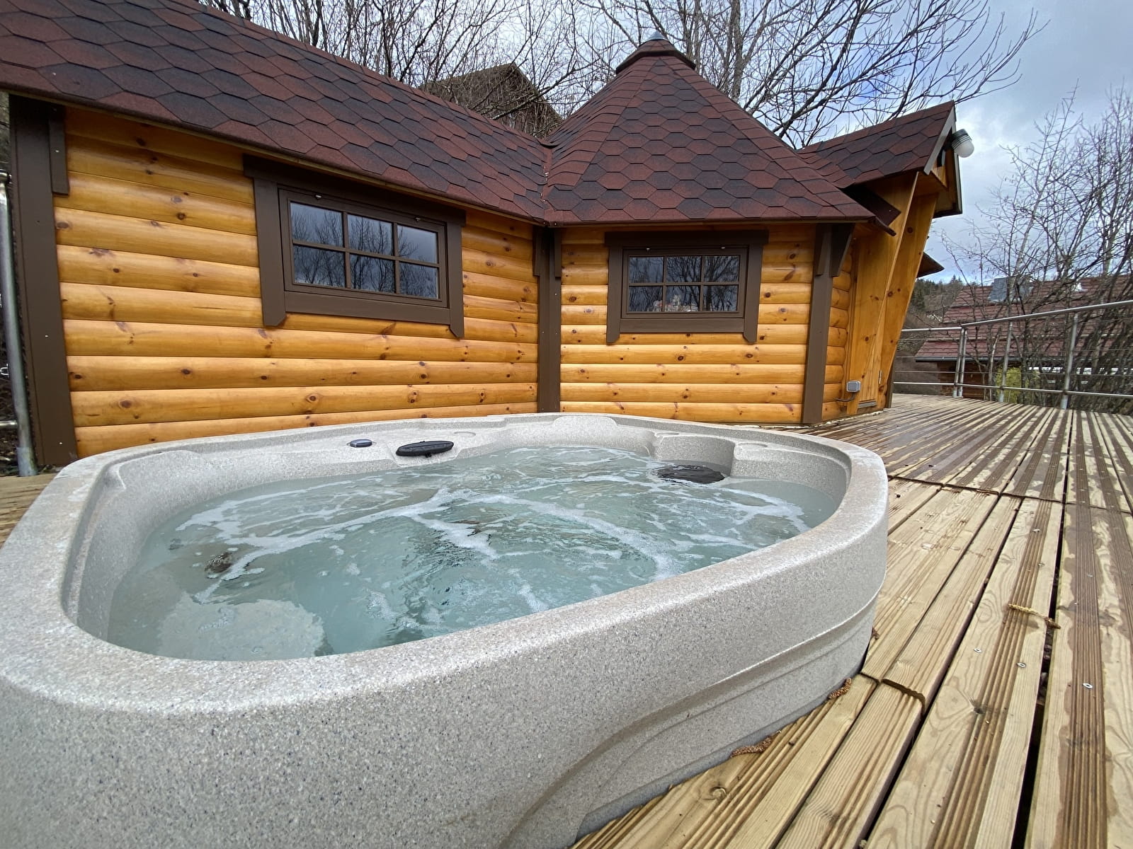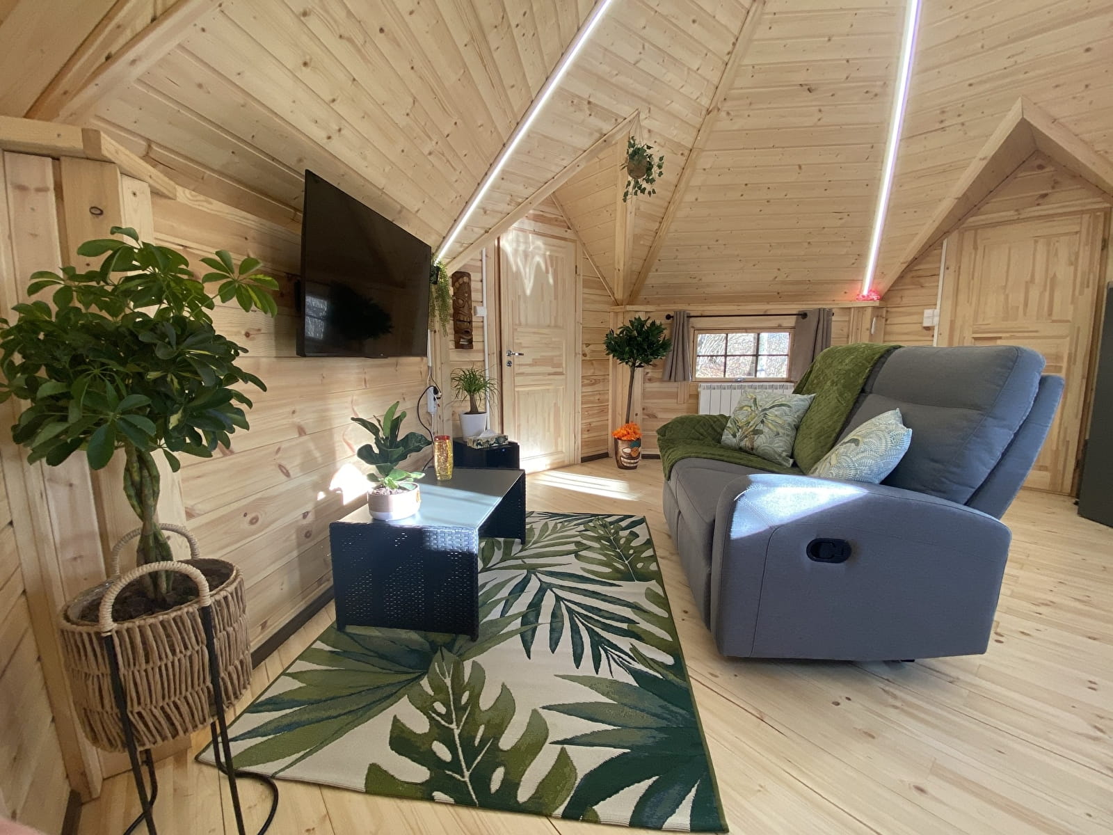 Mais ce n’est pas tout : installez-vous confortablement devant une fenêtre donnant sur le jacuzzi, où vous pourrez déguster vos repas en admirant la nature environnante, vous détendre dans un canapé relaxant parfait pour une sieste ou une soirée cinéma.
