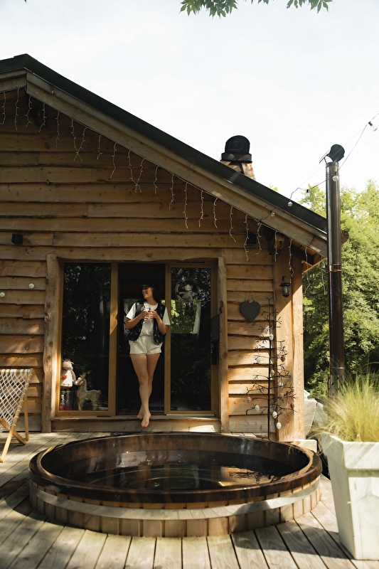 Venez découvrir le chalet insolite de luxe Licorne pour deux personnes avec sauna et bain nordique à remous privatifs.