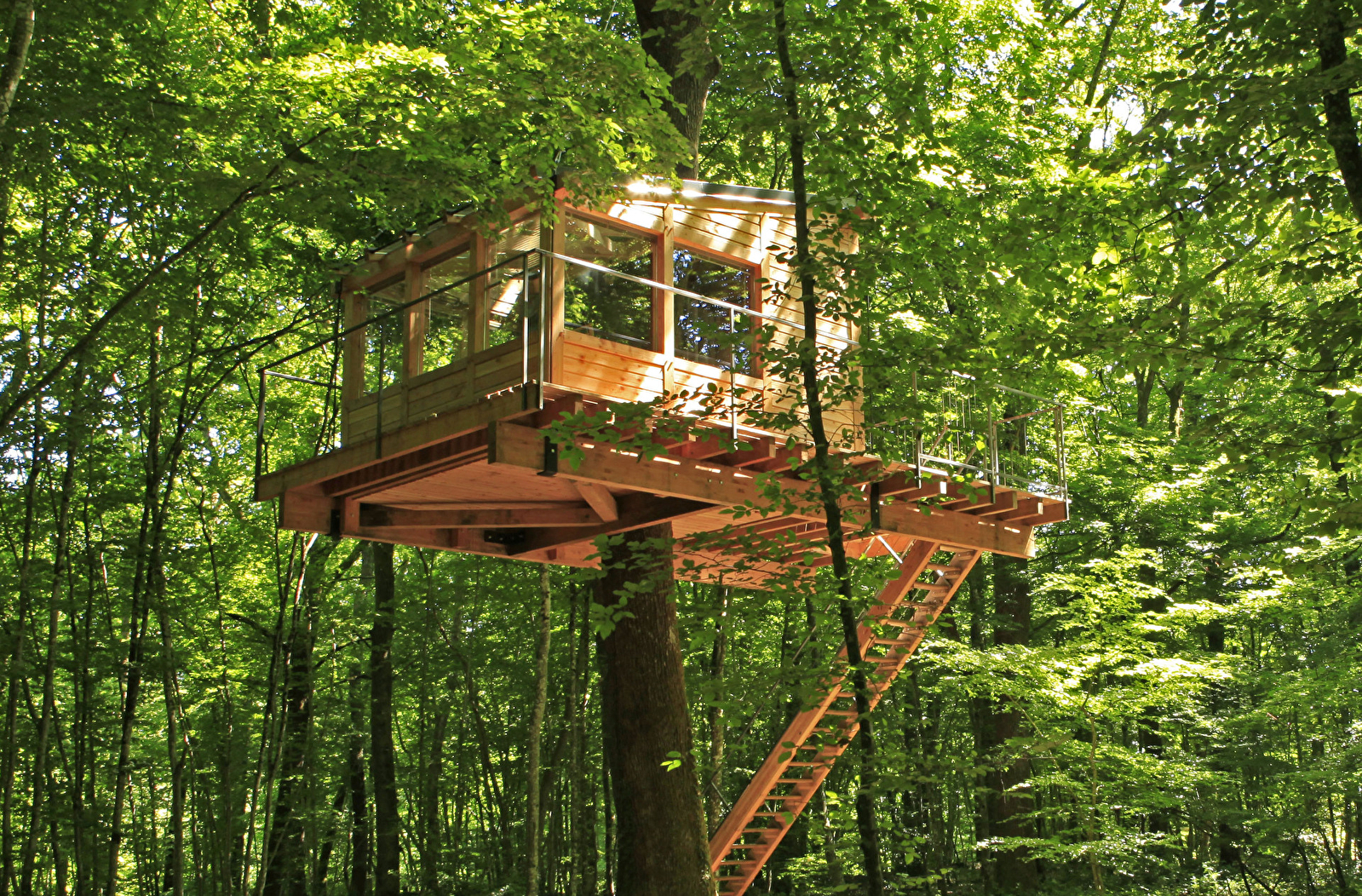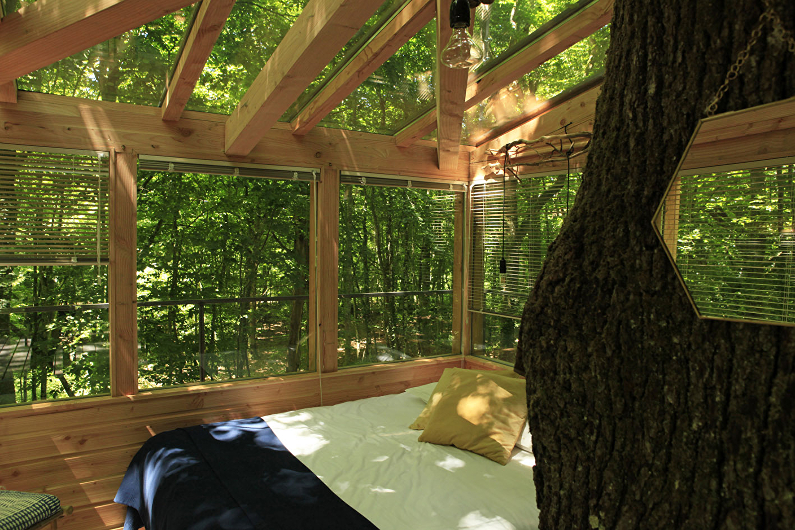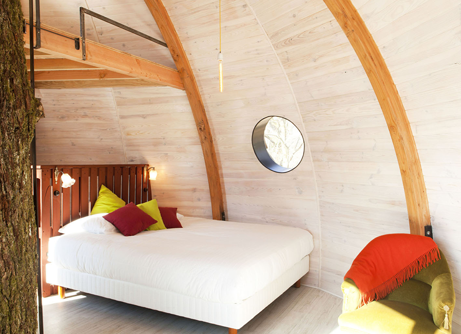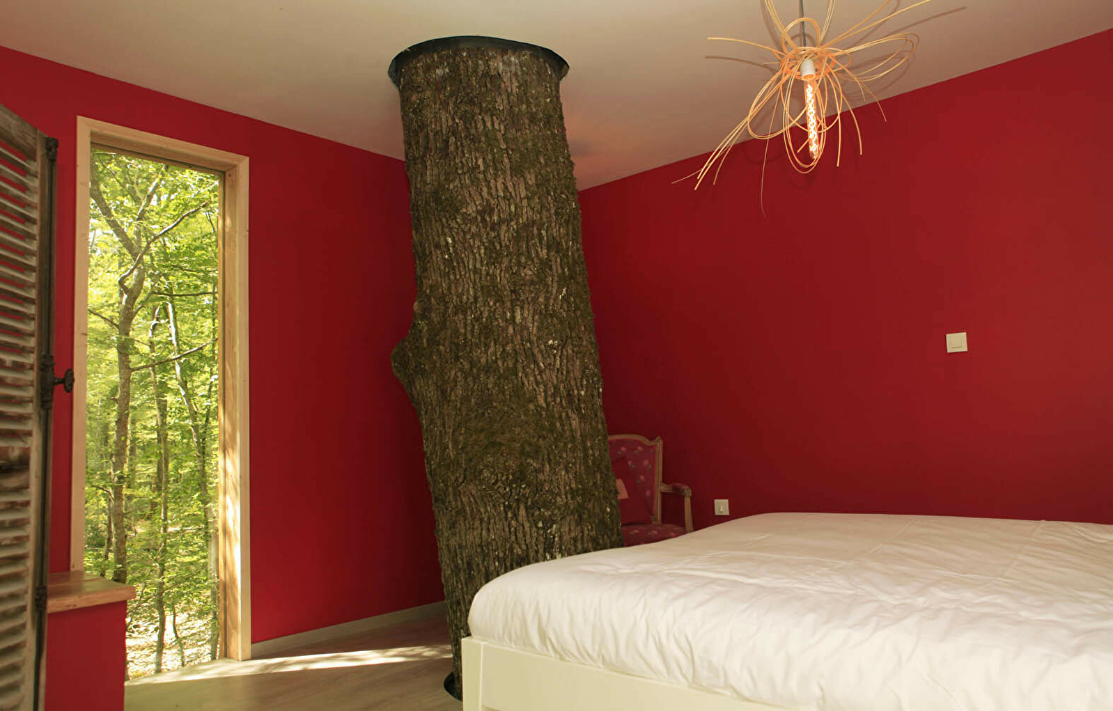 C'est dans le bois dit des "Galants" que sont implantés les nids perchés. Le nid penché : véritable cube de bois penché peint à l'ocre de Puisaye et bien suspendu à son arbre à 6.5 m de haut. Le nid sphère : sphère en bois solidement arrimée à son chêne tricentenaire. Le nid sur l'eau : deux cabines imbriquées l’une dans l’autre et solidement arrimées à quatre beaux chênes à quelques encablures du sol avec une terrasse surplombant la mare et le nid sous les étoiles : tout de bois et de verre, arrimé à un magnifique chêne à six mètres du sol. Salle d'eau privative pour chaque chambre.
