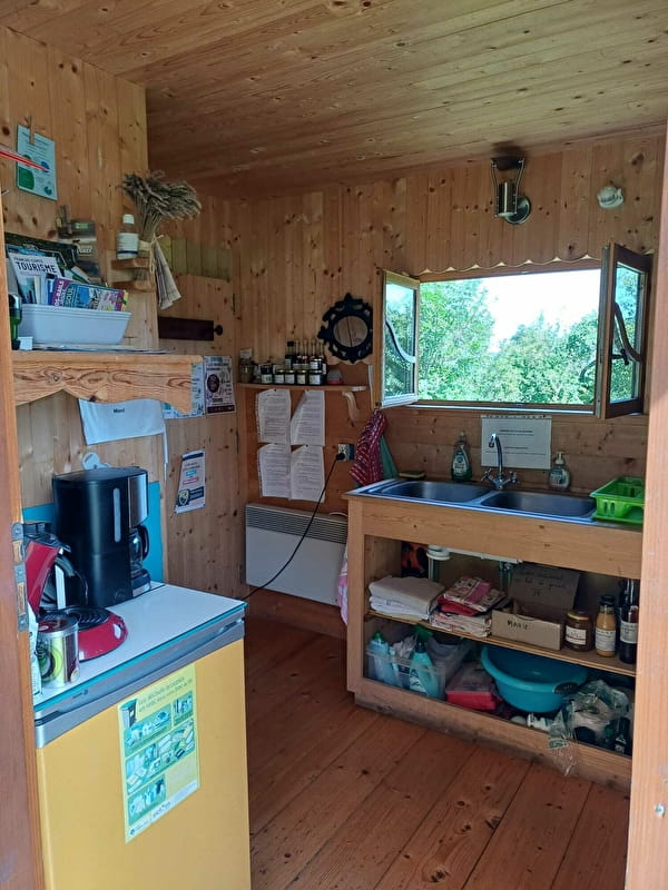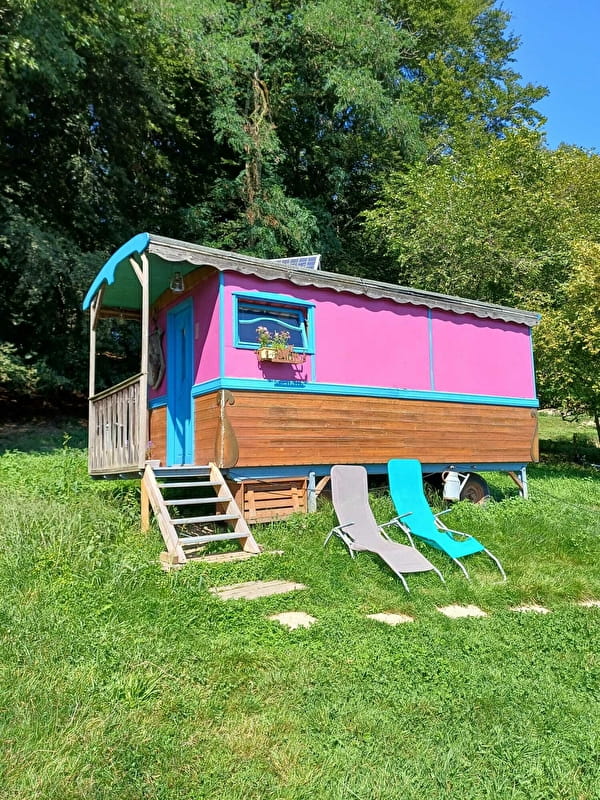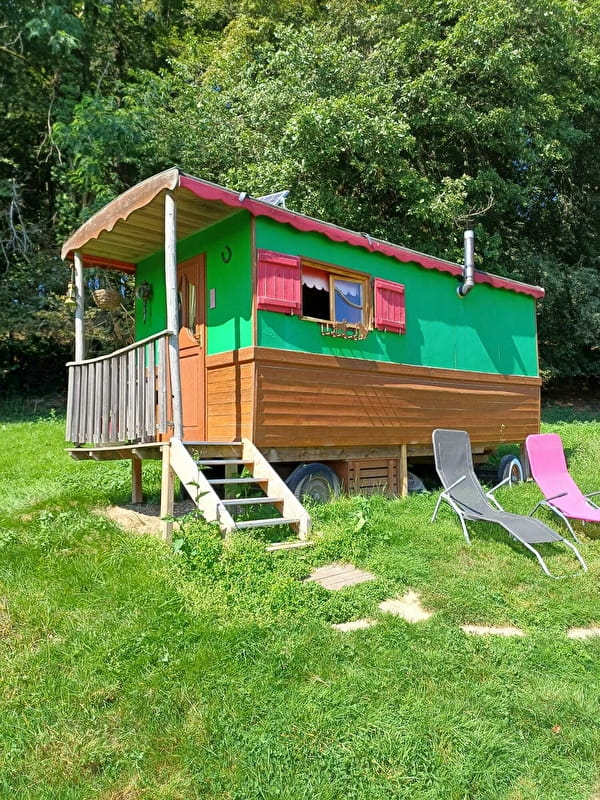 Trois roulottes équipées, une roulotte pour enfants et une roulotte sanitaire peuvent accueillir les amoureux de la campagne dans cette ferme isolée où l'on pratique l'agriculture biologique. Fromages de chèvre fabriqués sur place et oeufs de poule bio en vente directe à la ferme. La location pour une nuit va de 45 à 80€ en fonction de la saison et de la roulotte et la location pour une semaine de 225€ à 400€.
