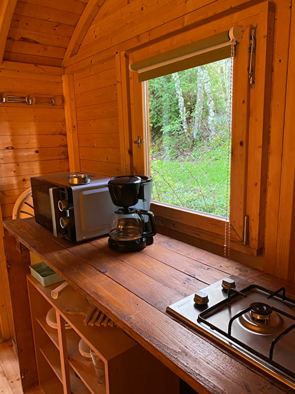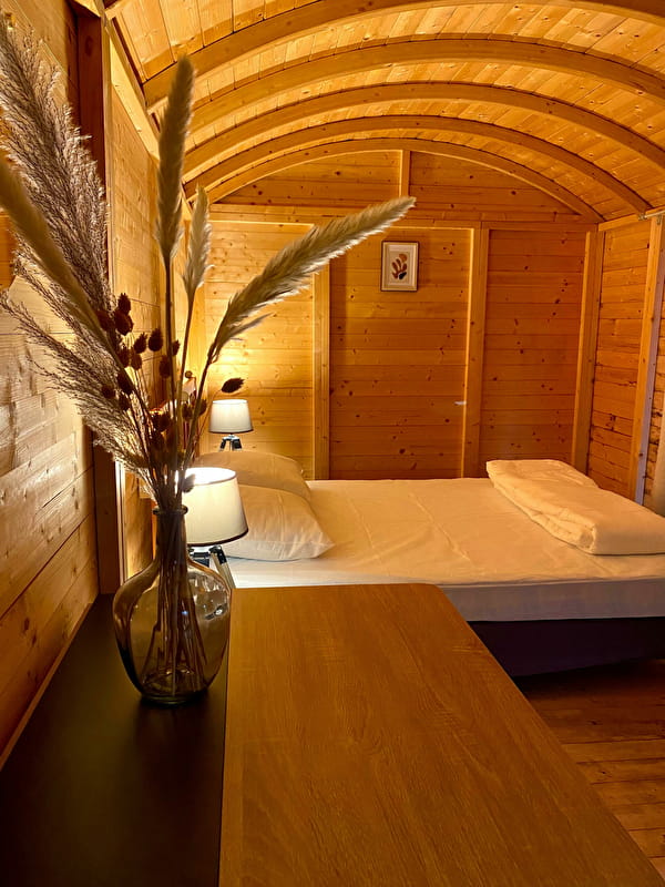 Nos 2 roulottes pour 2 personnes, entourés de paysages verdoyants, est adaptée à tous les types de campeurs, des aventuriers aux campeurs à la recherche d’un séjour tout confort (sanitaires collectifs et frigos partagés).