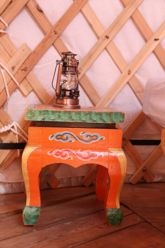 Une petite malle contenant le nécessaire pour manger vous permettra de pique niquer sachant qu'il n'est pas possible de cuisiner dans la yourte.Un petit frigo est disponible